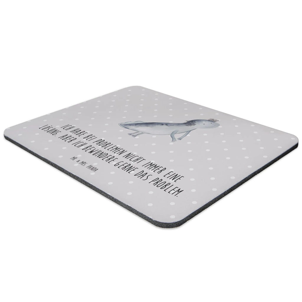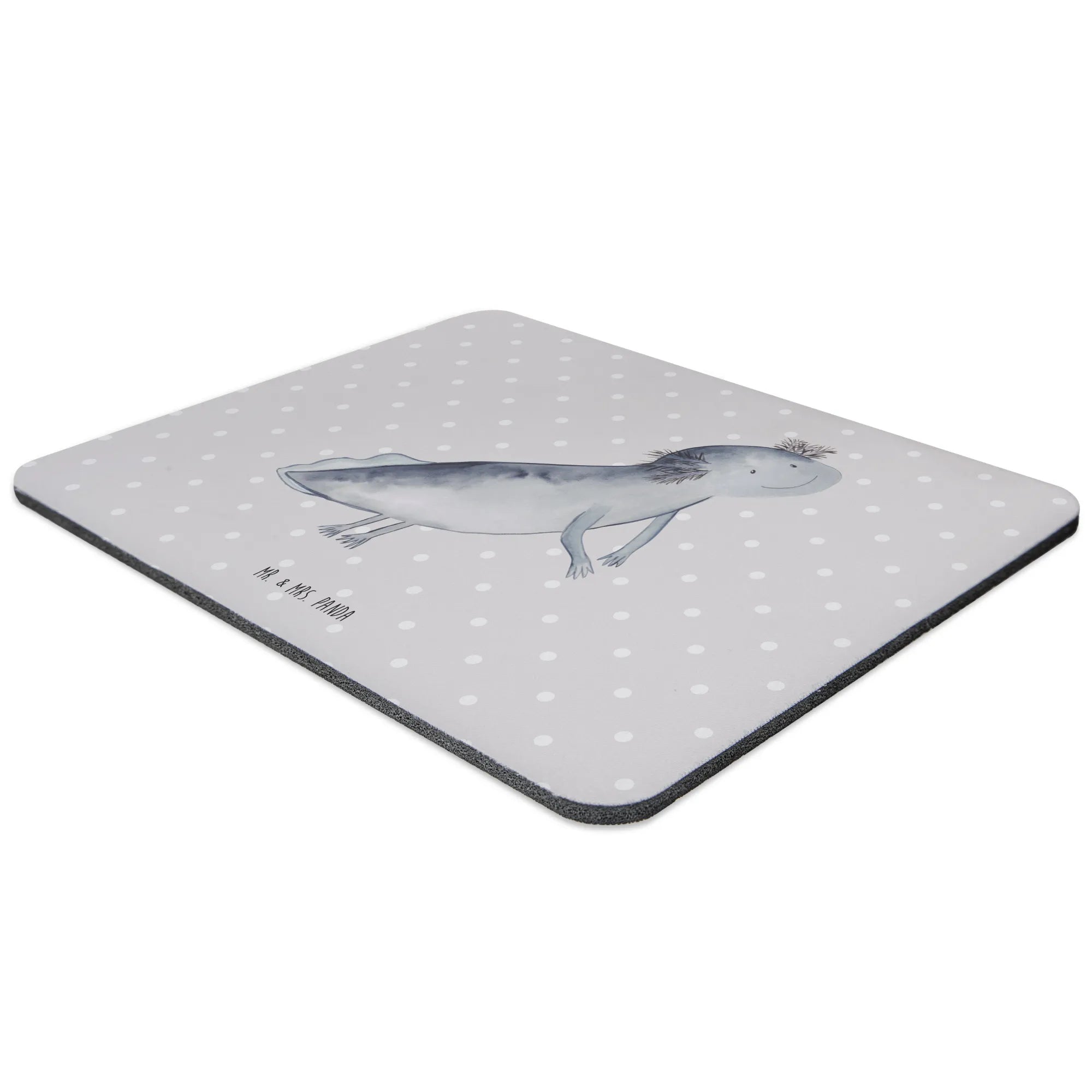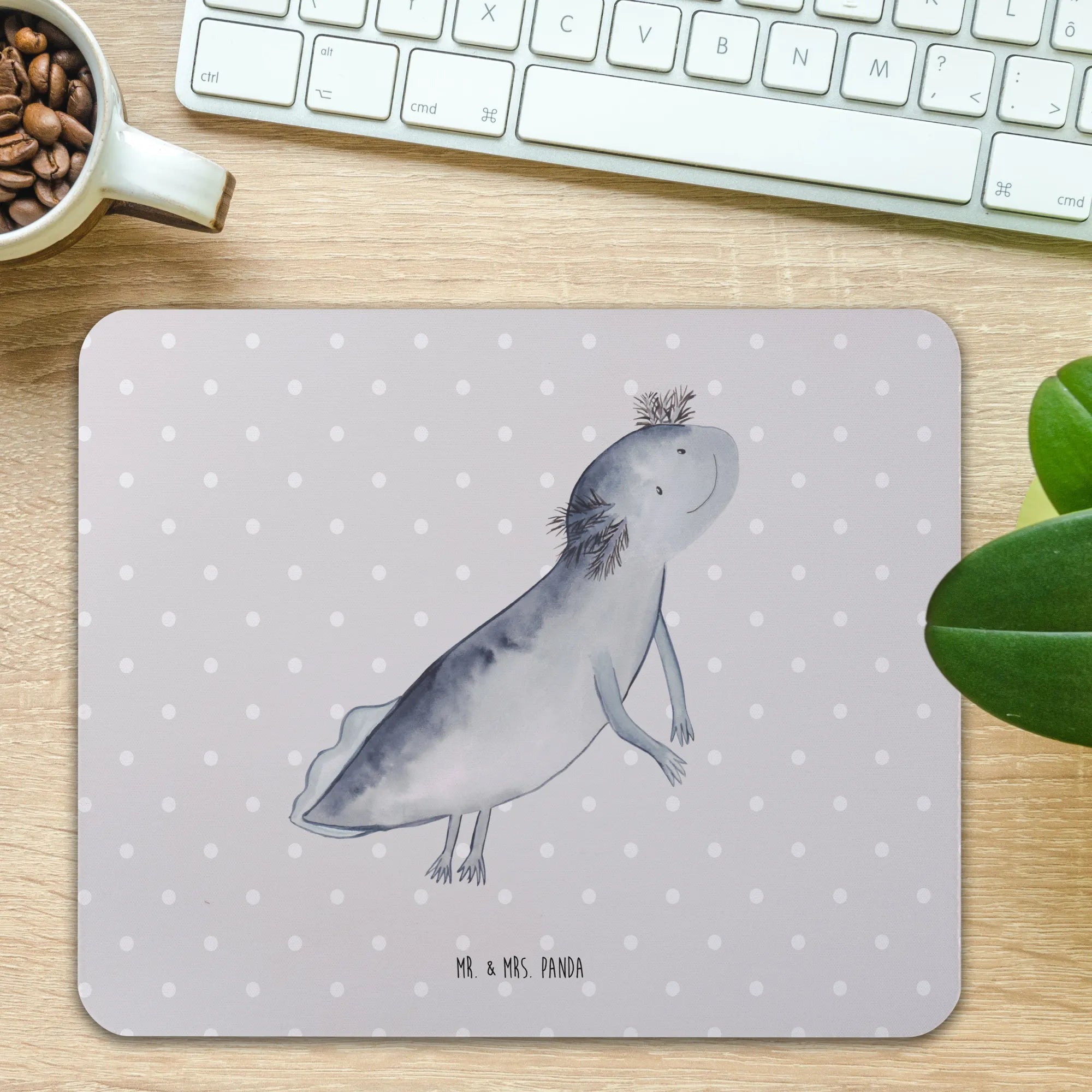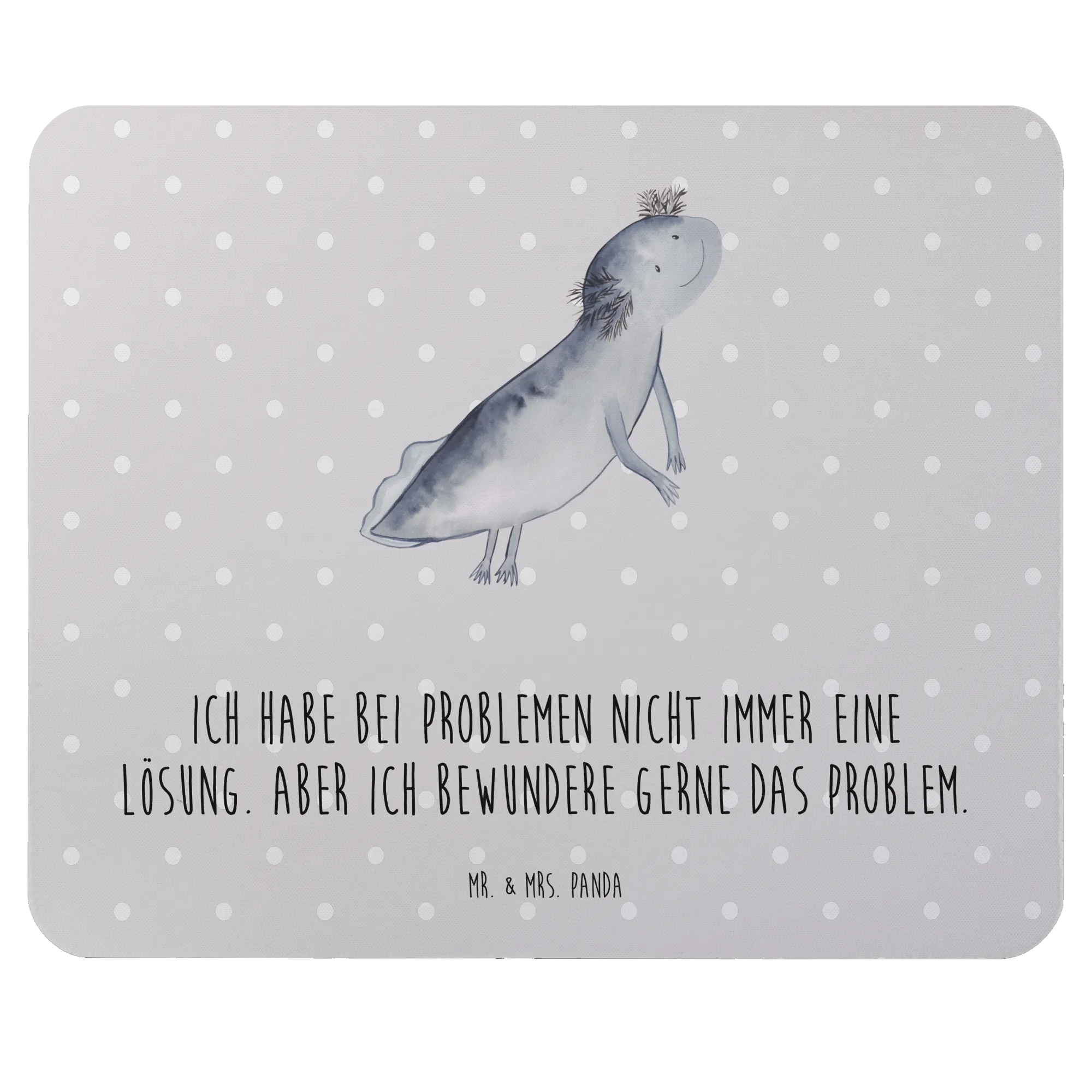 Mauspad Axolotl Schwimmen - mit Spruch - Grau Pastell