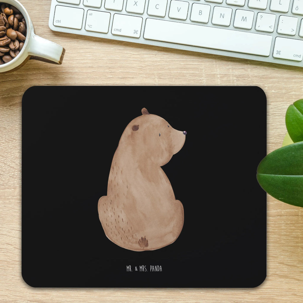 Mauspad Bär Schulterblick - mit Spruch - Schwarz