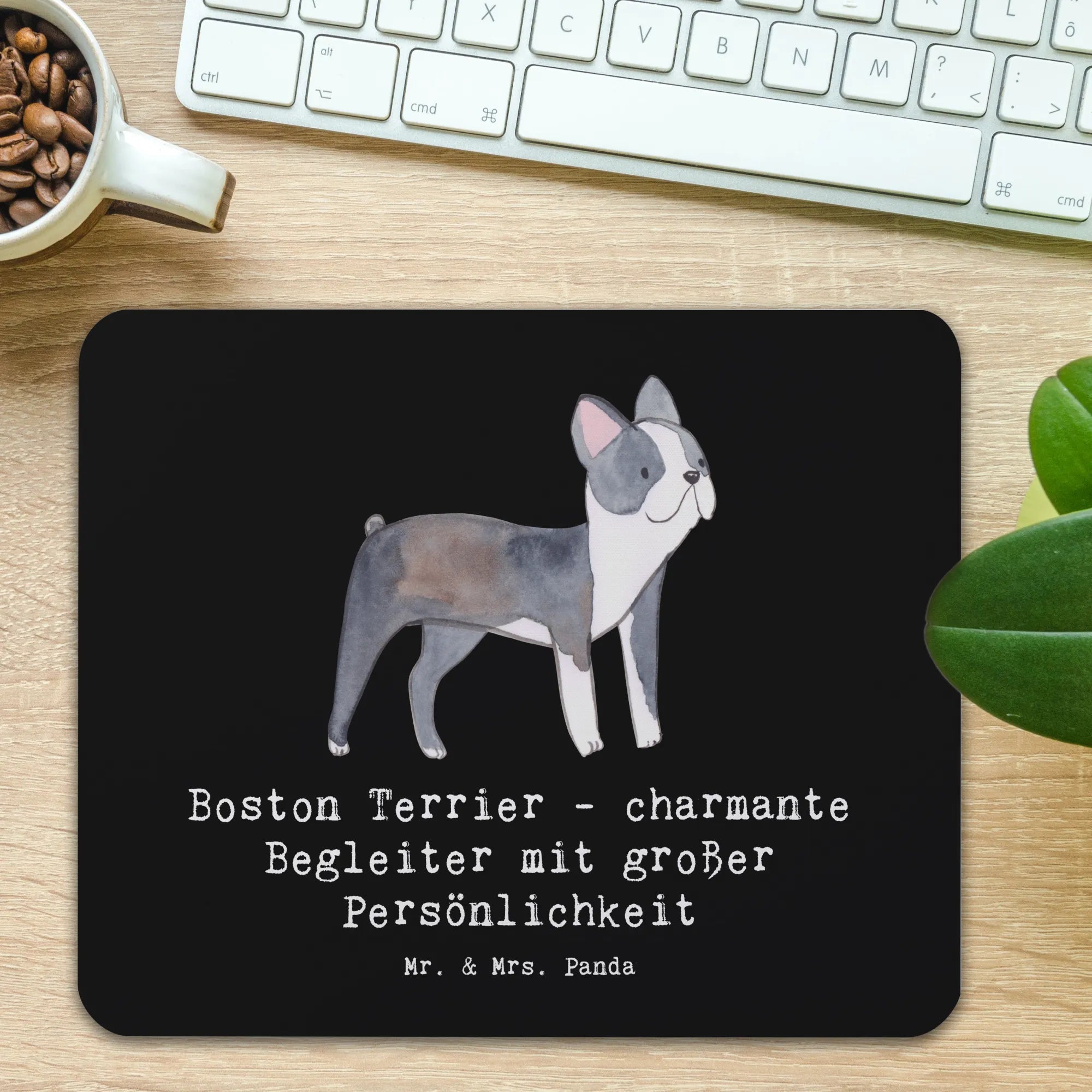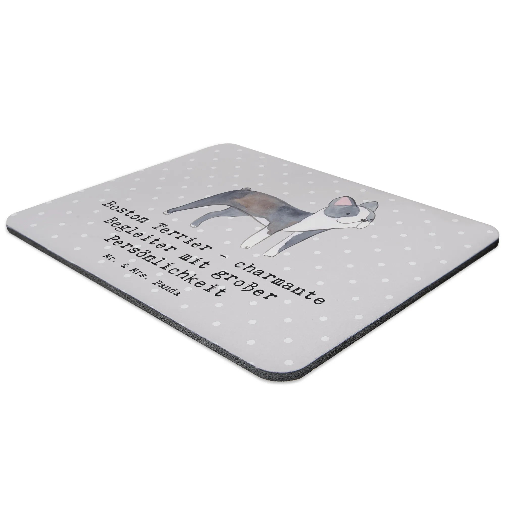 Das bezaubernde Mauspad mit dem Motiv "Boston Terrier - charmante Begleiter mit großer Persönlichkeit" von Mr. & Mrs. Panda ist das perfekte Geschenk für jeden Hundefan und funktioniert nicht nur als praktisches PC-Zubehör, sondern auch als ein echtes Liebhaberstück im Arbeitszimmer oder Homeoffice. Dieses hochwertige Mauspad wird nicht nur deinen Schreibtisch aufpeppen, sondern auch jeden Arbeitstag mit einem Lächeln begleiten!