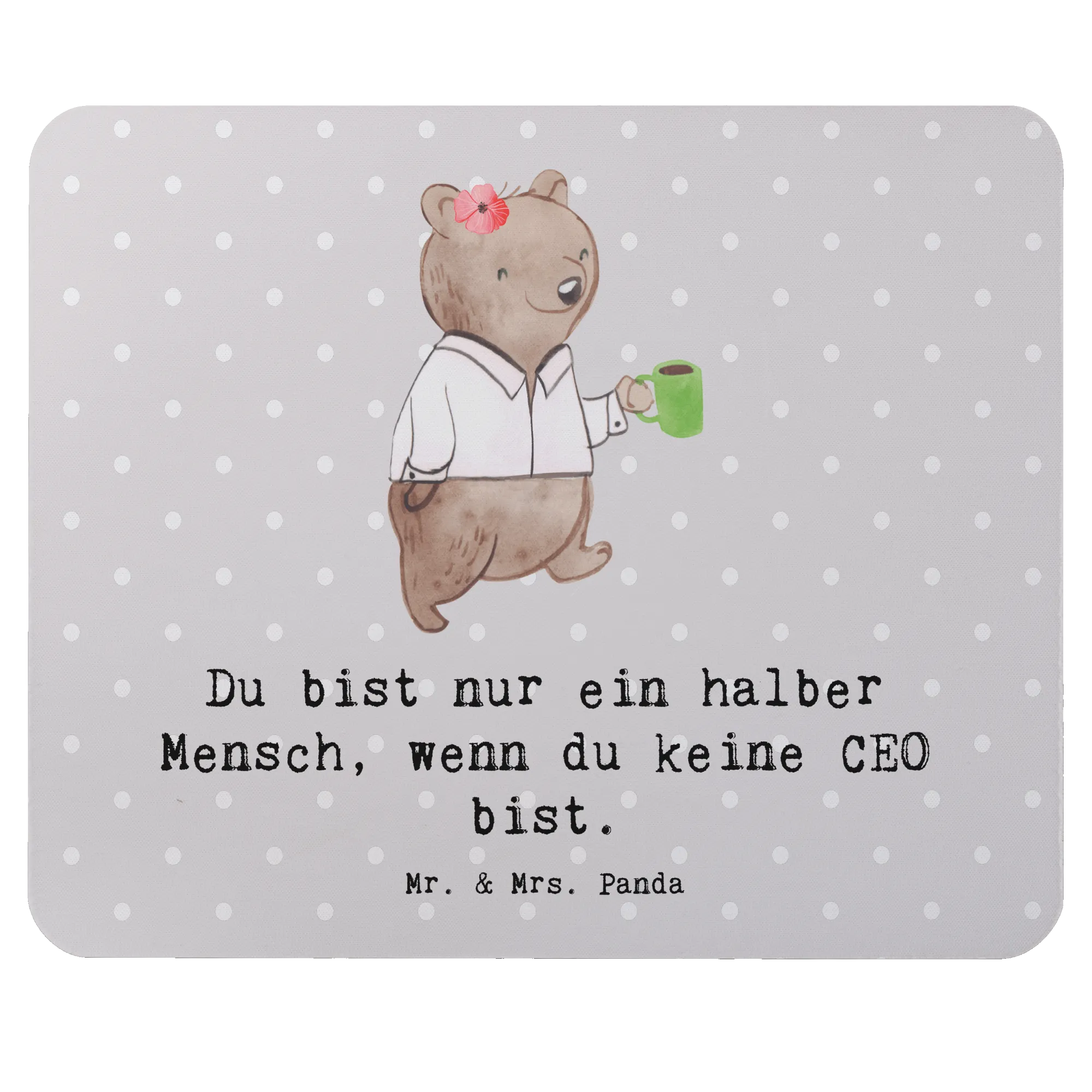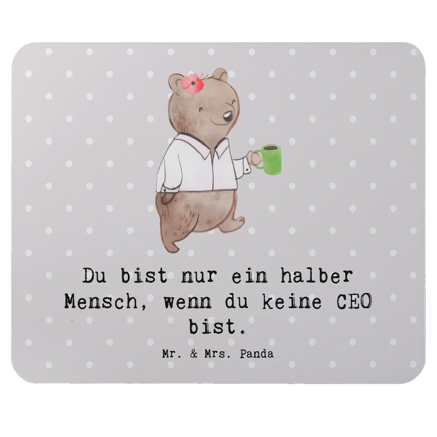 Das Mauspad "CEO mit Herz" aus der charmanten Berufe-Kollektion von Mr. & Mrs. Panda ist das perfekte Geschenk für all jene, die sich in einer Führungsrolle befinden oder einfach ihren Chefs eine Freude machen wollen. Mit einem süßen, handgezeichneten Motiv eines Cheerleader-Bären, der stolz eine Kaffeetasse hält und den Slogan "Du bist nur ein halber Mensch, wenn du keine CEO bist." ziert, bringt dieses Mauspad nicht nur Farbe auf den Schreibtisch, sondern auch ein Lächeln in den Büroalltag.