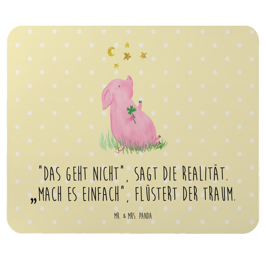 Mauspad Glücksschwein - mit Spruch - Gelb Pastell