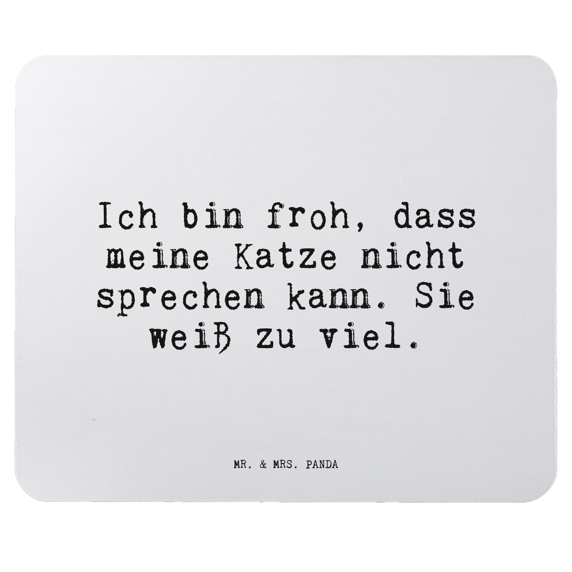 Das Mauspad "Ich bin froh, dass meine Katze nicht sprechen kann. Sie weiß zu viel." von Mr. & Mrs. Panda ist das perfekte Geschenk für alle Katzenliebhaber. In einer Welt voller Fragen und Geheimnisse kann man sich oft etwas weniger Klarheit wünschen, und genau darum geht es bei diesem skurrilen Spruch. Dieses witzige Mauspad sorgt nicht nur für ein Schmunzeln, sondern ist auch noch extrem nützlich für deinen Arbeitsalltag oder dein Homeoffice.