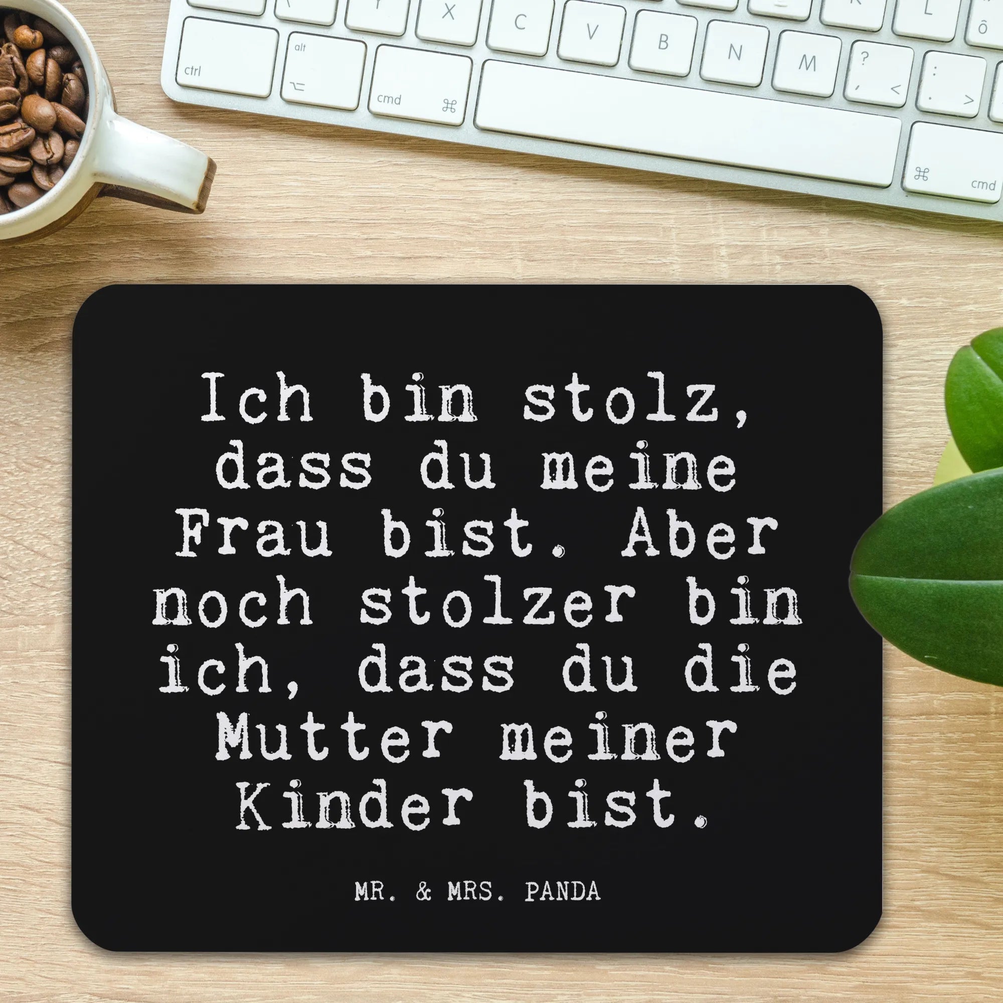 Das neue Mauspad von Mr. & Mrs. Panda ist der perfekte Begleiter für Deinen Arbeitsalltag oder Dein Homeoffice! Mit dem liebevollen Spruch "Ich bin stolz, dass du meine Frau bist. Aber noch stolzer bin ich, dass du die Mutter meiner Kinder bist." auf der Oberseite, bringt dieses einzigartige Mauspad nicht nur Farbe, sondern auch eine Portion Liebe auf Deinen Schreibtisch. Ob für Dich selbst oder als schönes Geschenk an deine Ehefrau, Partnerin oder beste Freundin – es ist das ideale Geschenk, um Wertschätzung und Stolz auszudrücken.
