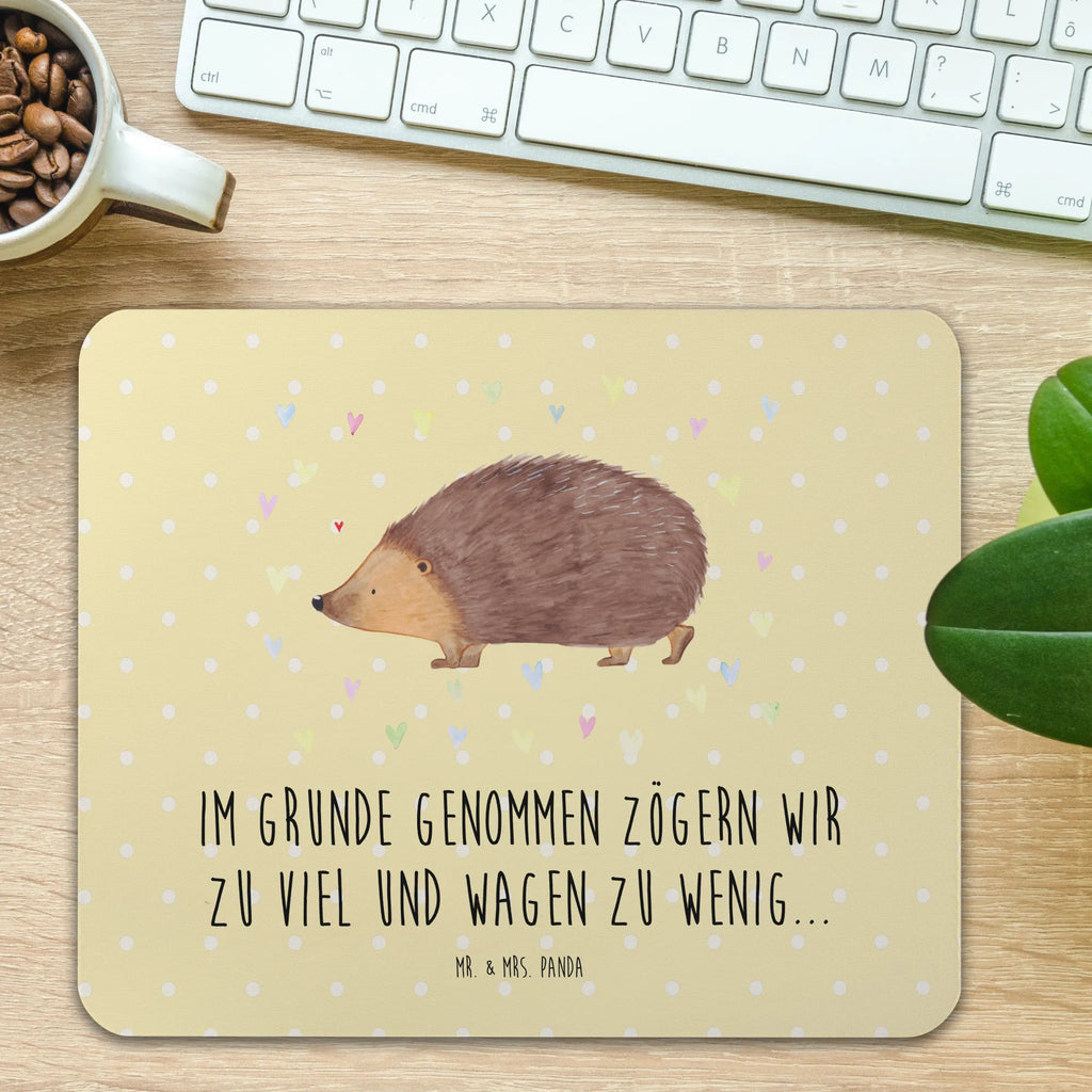 Mauspad Igel Herzen - mit Spruch - Gelb Pastell