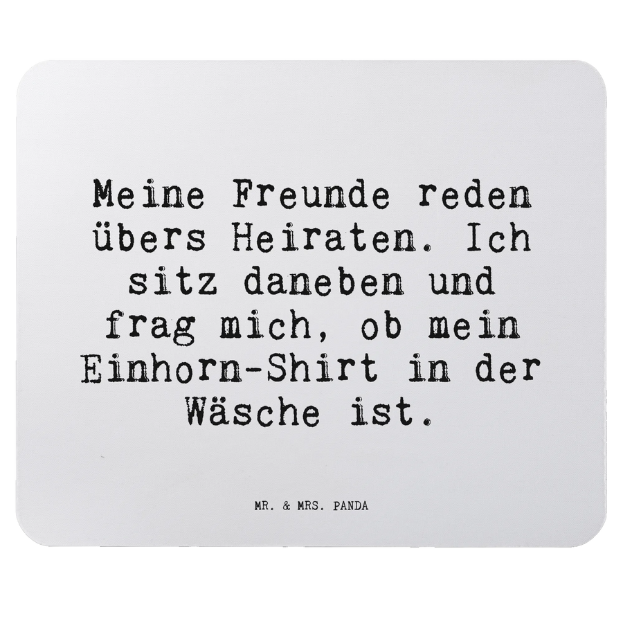 Mauspad Sprüche und Zitate Meine Freunde reden übers Heiraten. Ich sitz daneben und frag mich, ob mein Einhorn-Shirt in der Wäsche ist.