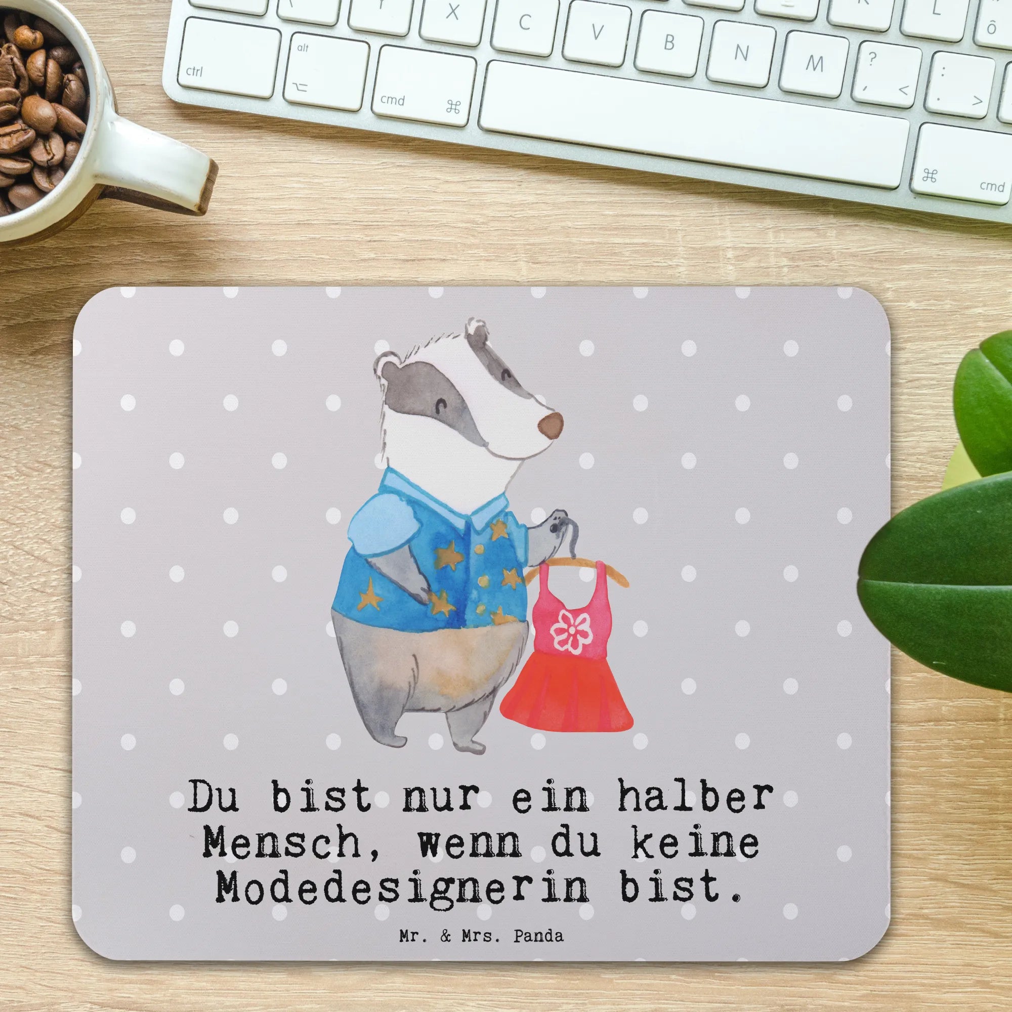 Wenn du auf der Suche nach einem originellen Geschenk bist, beispielsweise für einen Berufskollegen oder eine Kollegin bei einem Jubiläum oder Abschied, dann ist dieses Mauspad genau das Richtige. Das süße Motto "Du bist nur ein halber Mensch, wenn du keine Modedesignerin bist" spricht aus dem Herzen jeder kreativen Seele und sorgt für ein Lächeln beim Beschenkten. Egal zu welchem Anlass, ob zum Dankeschön für einen tollen Kollegen oder einfach um einer Freundin eine Freude zu machen - unser Mauspad wird jedem eine große Freude bereiten und ist ein wunderbares Zeichen der Wertschätzung. Mach deinen Arbeitsplatz einzigartig und persönlich mit diesem bezaubernden Mauspad von Mr. & Mrs. Panda!