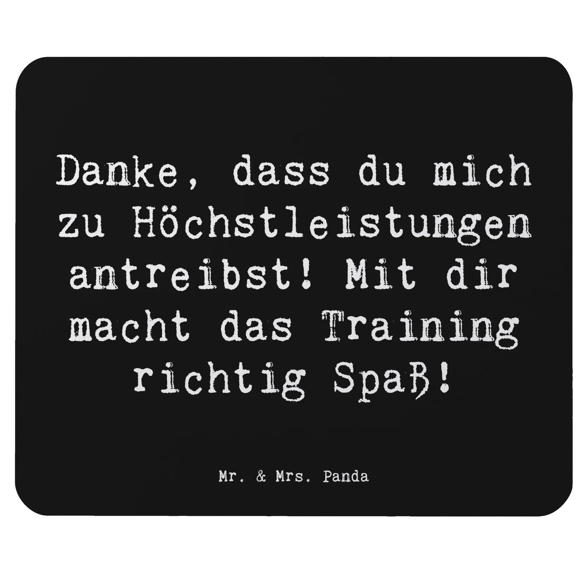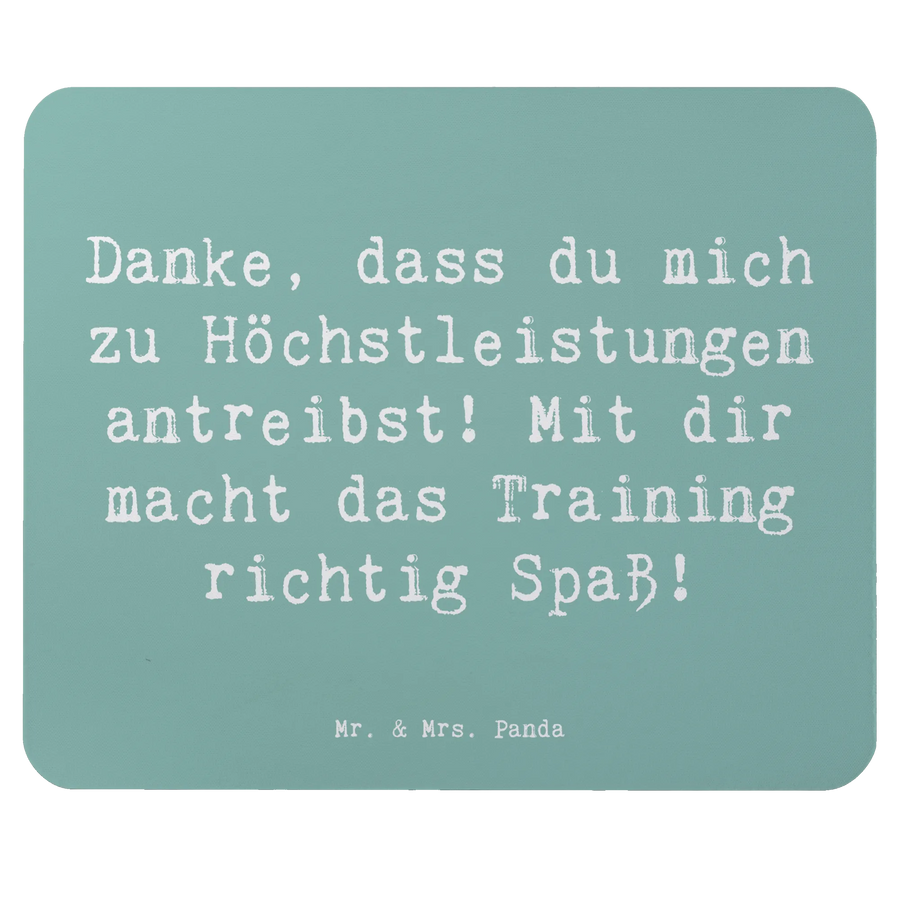Du suchst nach dem perfekten Geschenk für deinen lieben Fitness-Trainer? Dann ist das Mauspad mit dem herzlichen Spruch "Danke, dass du mich zu Höchstleistungen antreibst! Mit dir macht das Training richtig Spaß!" von Mr. & Mrs. Panda genau das Richtige!