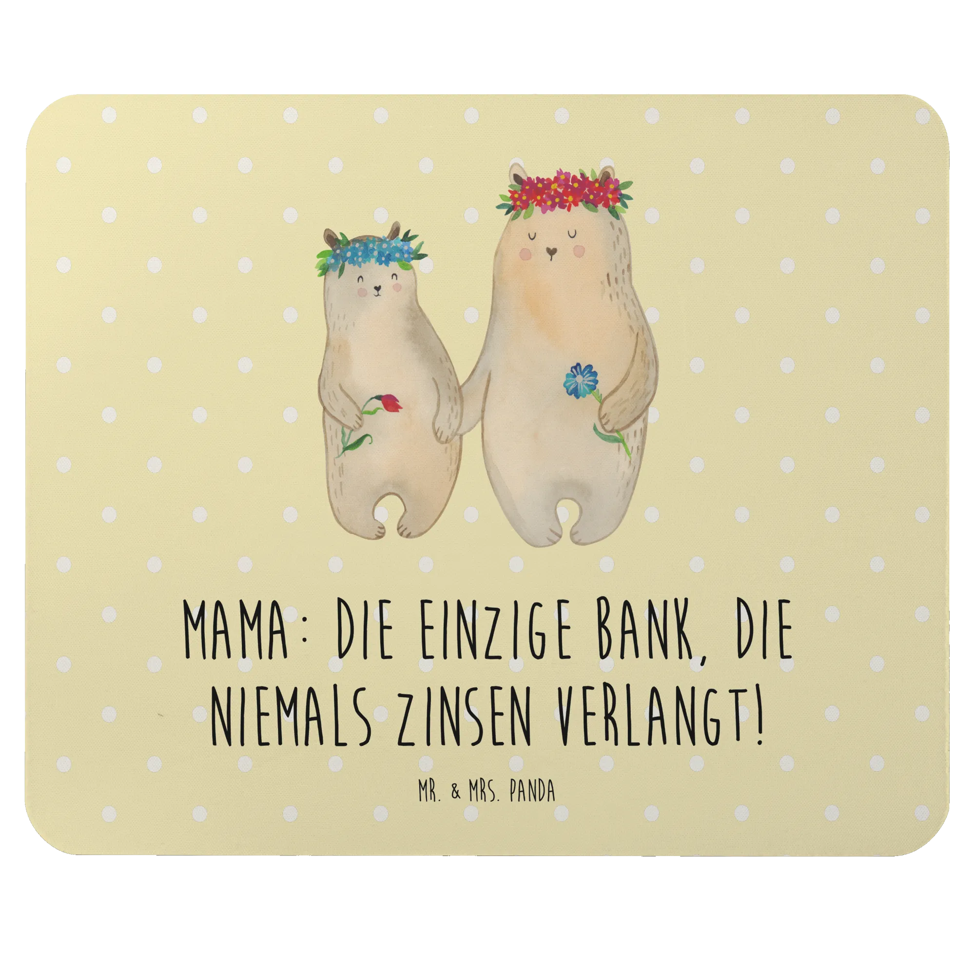 Das Mauspad "Mama: Die einzige Bank, die niemals Zinsen verlangt!" von Mr. & Mrs. Panda ist das perfekte Geschenk für jeden, der seiner Mutter anlässlich des Muttertags eine ganz besondere Freude bereiten möchte. Mit einem einzigartigen und liebevollen Design, das die wunderbare Beziehung zwischen Mutter und Kind widerspiegelt, ist dieses Mauspad ein echter Hingucker in jedem Arbeitszimmer oder Homeoffice. Jeder, der regelmäßig einen Computer benutzt, weiß, wie wichtig eine angenehme Mausunterlage ist – und dieses Mauspad kombiniert Komfort und Stil auf wunderbare Weise!