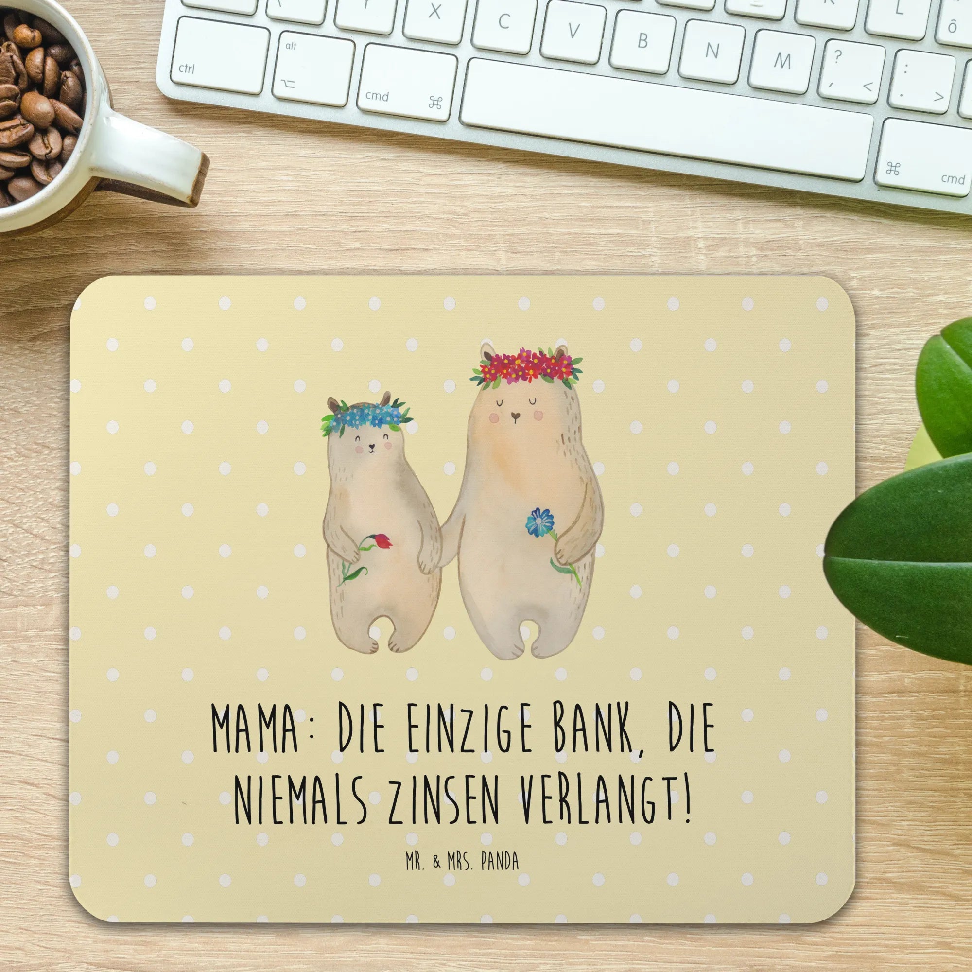 Suchst Du nach dem perfekten Geschenk für Deine Mama oder willst Du Dir selbst eine Freude machen? Dann ist das Mauspad "Mama: Die einzige Bank, die niemals Zinsen verlangt!" aus der Familie & Verwandte Kollektion von Mr. & Mrs. Panda genau das Richtige! Dieses einzigartige Mauspad ist nicht nur ein nützliches Computerzubehör für das Büro oder Homeoffice, sondern auch ein liebevolles Zeichen der Dankbarkeit und Wertschätzung für alle Mütter.