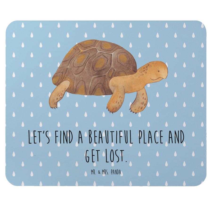 Mauspad Schildkröte marschiert - mit Spruch - Blau Pastell