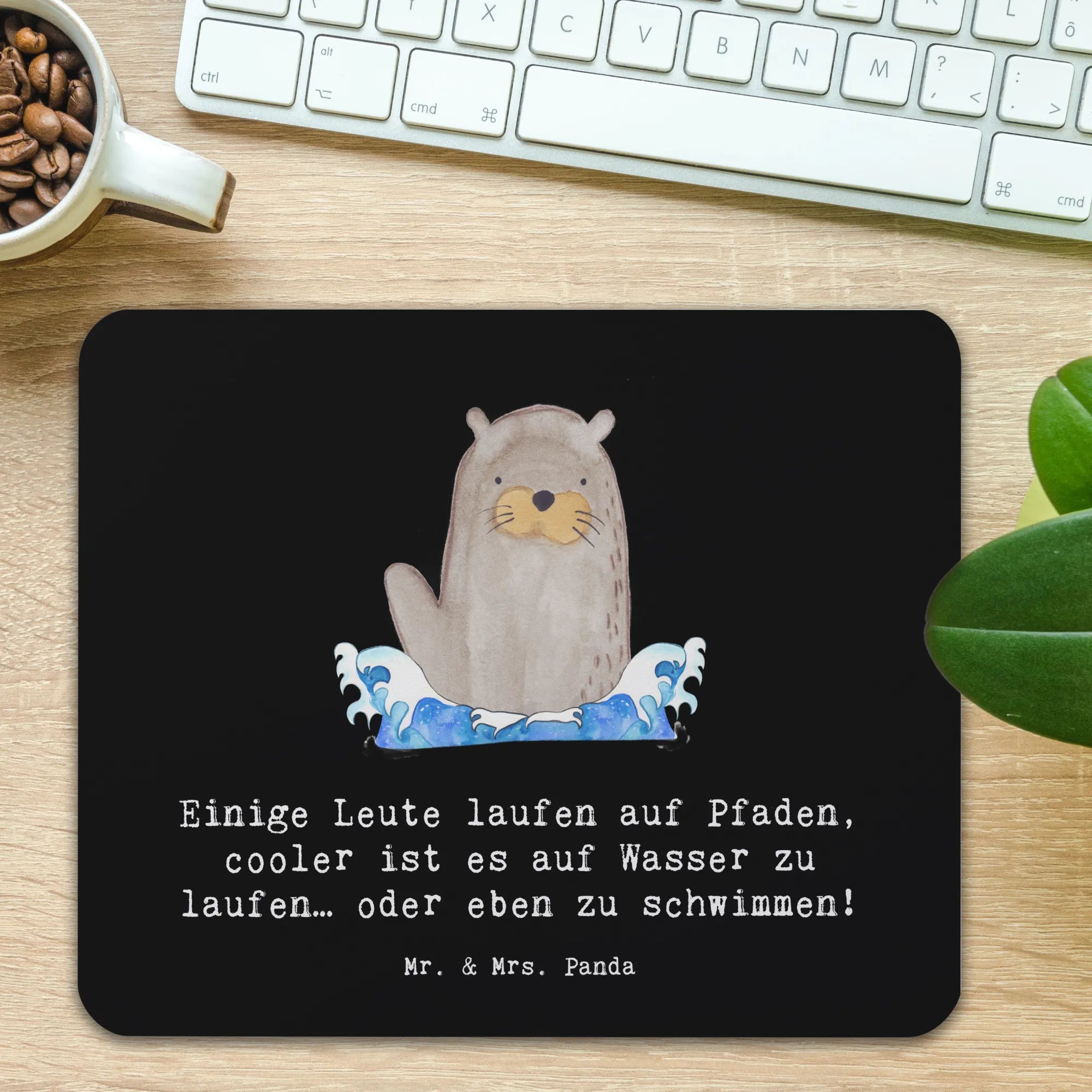 Das Mauspad "Schwimmen" aus der Kollektion Sportarten von Mr. & Mrs. Panda ist mehr als nur ein praktisches Büroaccessoire – es ist ein Ausdruck deiner Leidenschaft für den Sport! Mit einem witzigen Slogan, der besagt: 'Einige Leute laufen auf Pfaden, cooler ist es auf Wasser zu laufen… oder eben zu schwimmen!', verleiht dieses Mauspad deinem Arbeitsplatz einen frischen, sportlichen Flair.