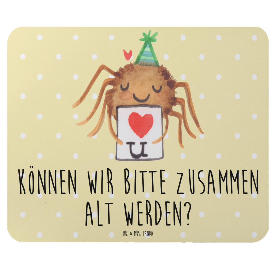 Das gesamte Design ist in einem fröhlichen Gelbton gehalten, der jeden Schreibtisch aufhellt. Du kannst sicher sein, dass dieses Mauspad jede Arbeitssitzung zu einem romantischen Abenteuer macht. Mach dir selbst oder jemand Besonderem eine Freude mit diesem wunderbaren und originellen Mauspad von Mr. & Mrs. Panda aus der beliebten Spinne Agathe Kollektion. Es ist das perfekte Geschenk für Valentinstag, Jahrestage oder einfach als kleiner Liebesbeweis im Alltag.
