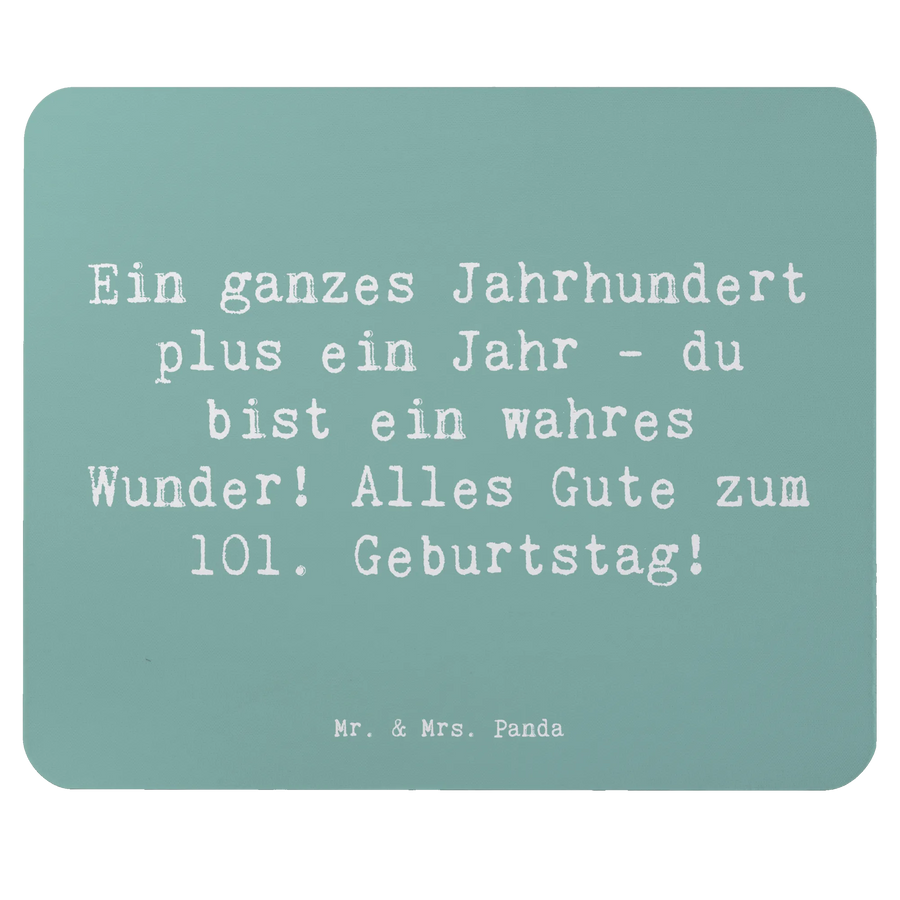 Suchst du ein ganz besonderes Geschenk zum 101. Geburtstag? Dann ist das Mauspad "Ein ganzes Jahrhundert plus ein Jahr - du bist ein wahres Wunder! Alles Gute zum 101. Geburtstag!" von Mr. & Mrs. Panda genau das Richtige für dich! Damit machst du nicht nur das Büro, sondern auch das Homeoffice zu einem ganz besonderen Ort. Auf diesem einzigartigen Mauspad ist der Spruch liebevoll gestaltet und bringt mit Sicherheit ein Lächeln auf die Lippen des Beschenkten!