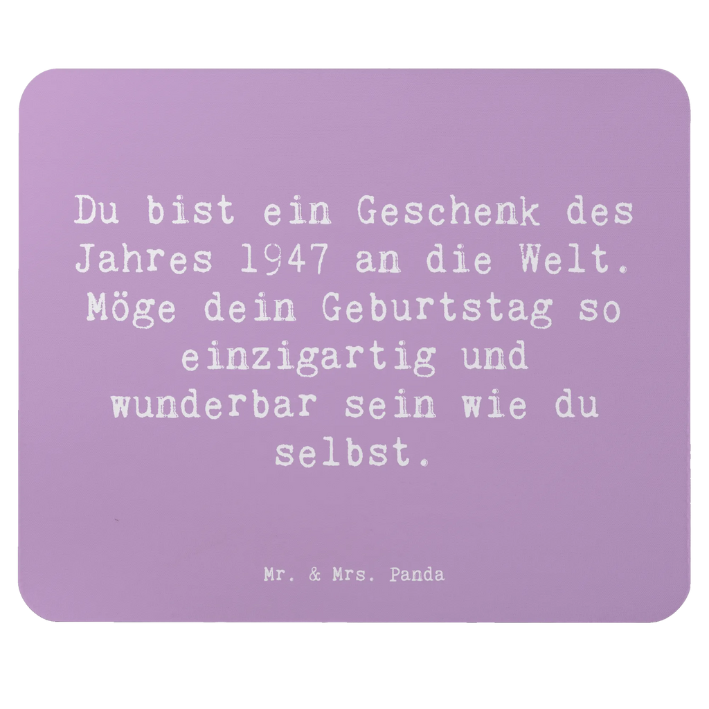 Suchst du das perfekte Geschenk für einen besonderen Menschen, der 1947 geboren wurde? Dann ist das Mauspad mit dem liebevollen Motiv "Du bist ein Geschenk des Jahres 1947 an die Welt. Möge dein Geburtstag so einzigartig und wunderbar sein wie du selbst." genau das Richtige für dich! Dieses wunderschöne Mauspad von Mr. & Mrs. Panda wird nicht nur das PC Zubehör auf deinem Schreibtisch aufpeppen, sondern ist auch ein wahrhaft einzigartiges Geburtstagsgeschenk.