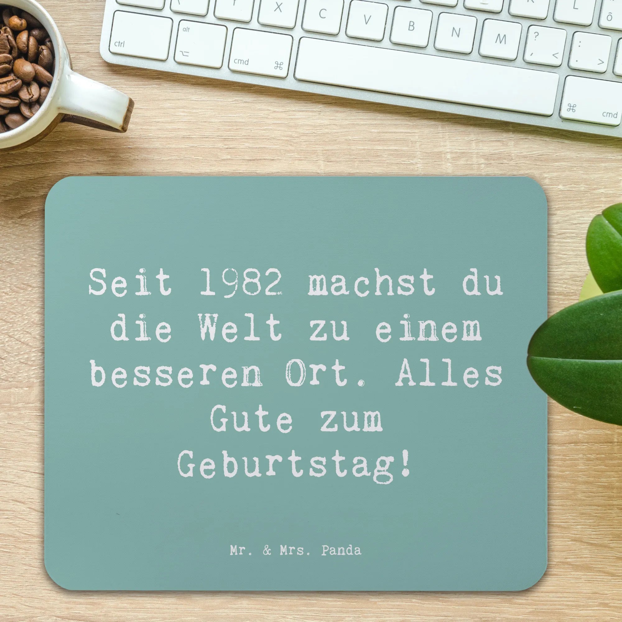 Suchst du nach dem perfekten Geschenk für jemanden, der 1982 geboren wurde? Dann ist das einzigartige Mauspad von Mr. & Mrs. Panda genau das Richtige! Dieses handgemachte und stilvolle Mauspad ist nicht nur ein praktisches Zubehör für Büro und Homeoffice, sondern auch ein liebevolles Geburtstagsgeschenk, das Herzen höherschlagen lässt. Mit dem neuen Lieblingsmotto „Seit 1982 machst du die Welt zu einem besseren Ort. Alles Gute zum Geburtstag!“ wird jeder Schreibtisch zum persönlichen Highlight.