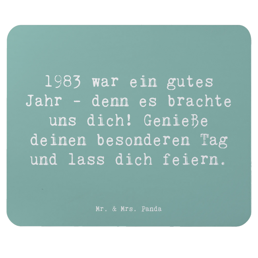 Das Mauspad "1983 Geburtstag" von Mr. & Mrs. Panda ist nicht nur ein praktisches Gadget für dein Homeoffice oder Büro, sondern auch ein zauberhaftes Erinnerungsstück für jeden, der in diesem besonderen Jahr geboren wurde. Egal, ob du es dir selbst gönnst oder es als Geschenk für einen Freund, Kollegen oder Familienmitglied besorgst, dieses Mauspad bringt Freude und Leben in jeden Arbeitsalltag. Der liebevolle Slogan "1983 war ein gutes Jahr - denn es brachte uns dich! Genieße deinen besonderen Tag und lass dich feiern." zaubert garantiert ein Lächeln auf die Gesichter aller, die es lesen.