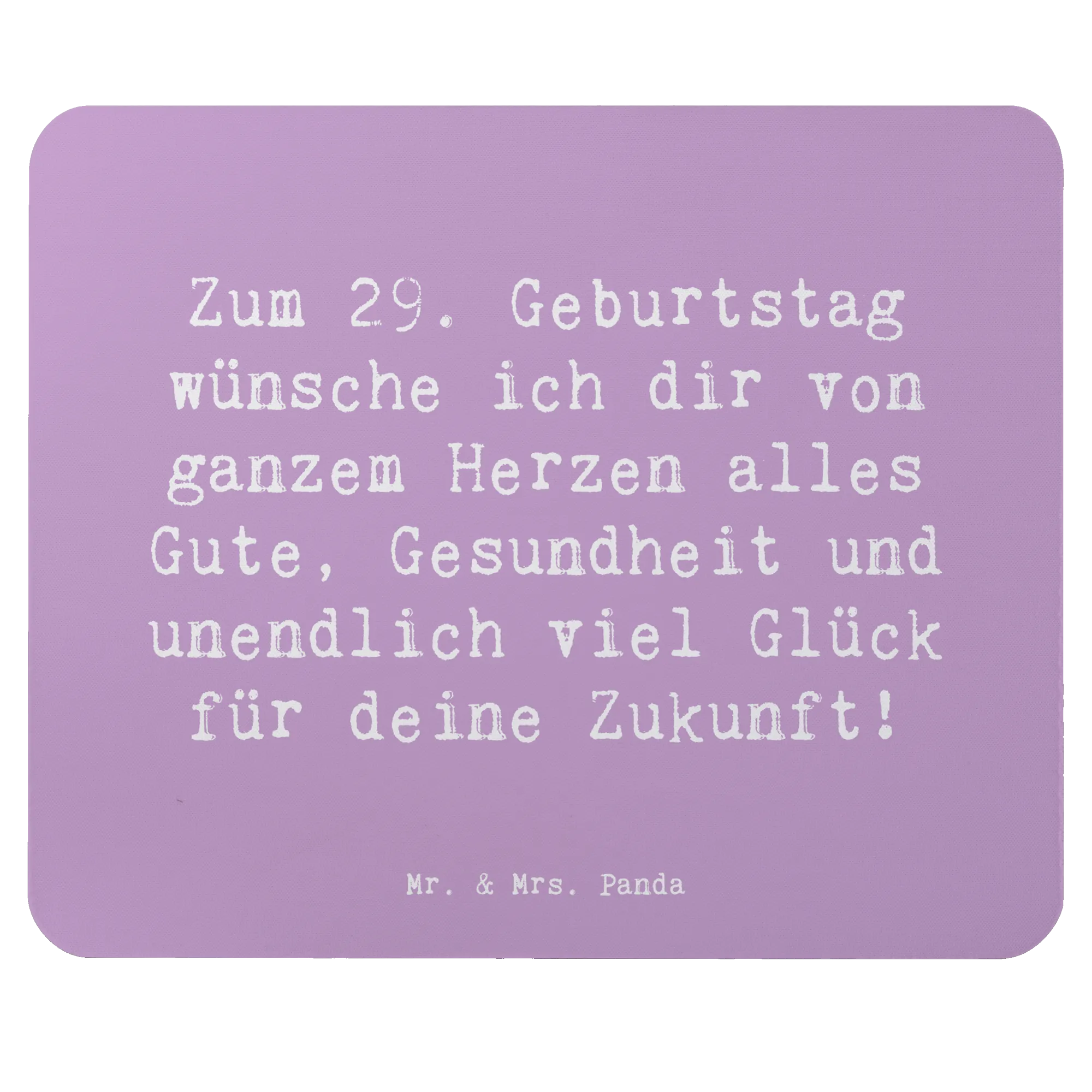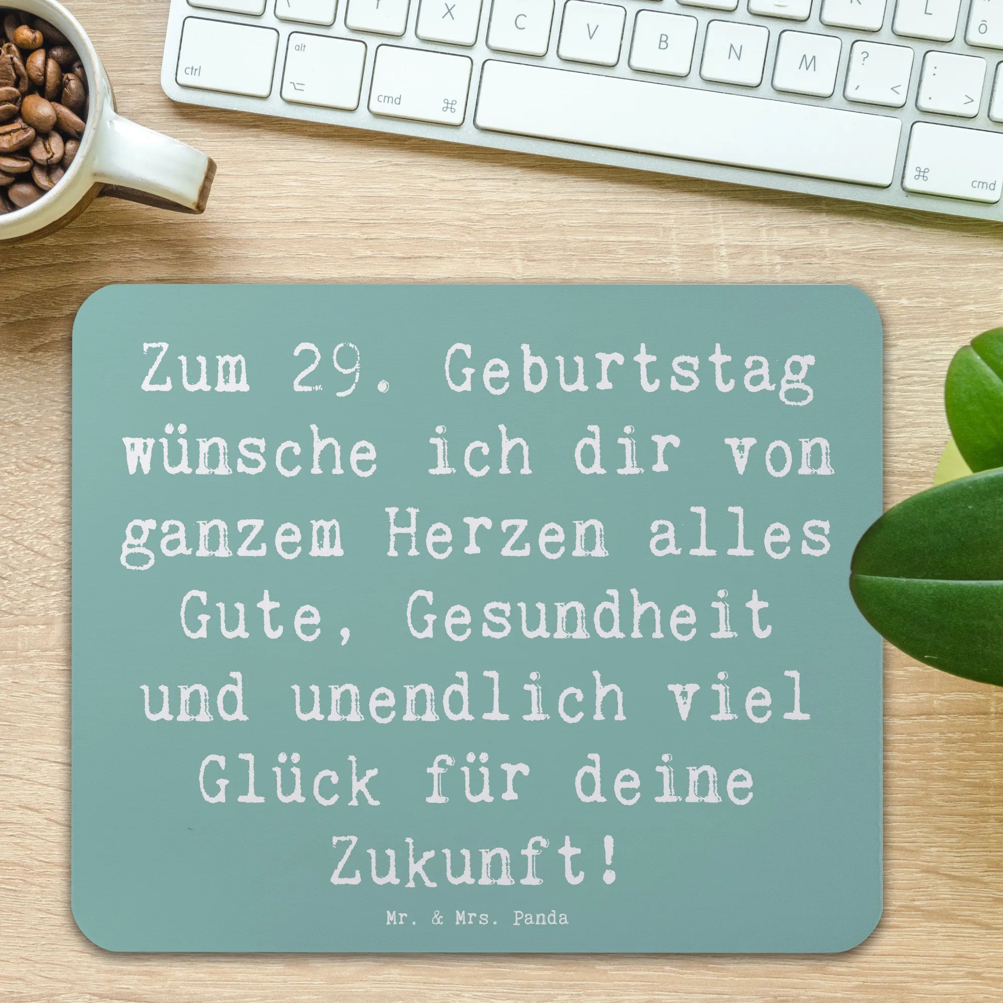 Der 29. Geburtstag ist ein besonderes Ereignis, das gebührend gefeiert werden sollte! Umso schöner, wenn du dabei ein ganz persönliches Geschenk überreichen kannst, das nicht nur funktional ist, sondern auch mit liebevollen Worten begeistert. Das Mauspad "Zum 29. Geburtstag wünsche ich dir von ganzem Herzen alles Gute, Gesundheit und unendlich viel Glück für deine Zukunft!" aus der einzigartigen Mr. & Mrs. Panda Kollektion Geburtstag Alter ist dafür die perfekte Wahl.