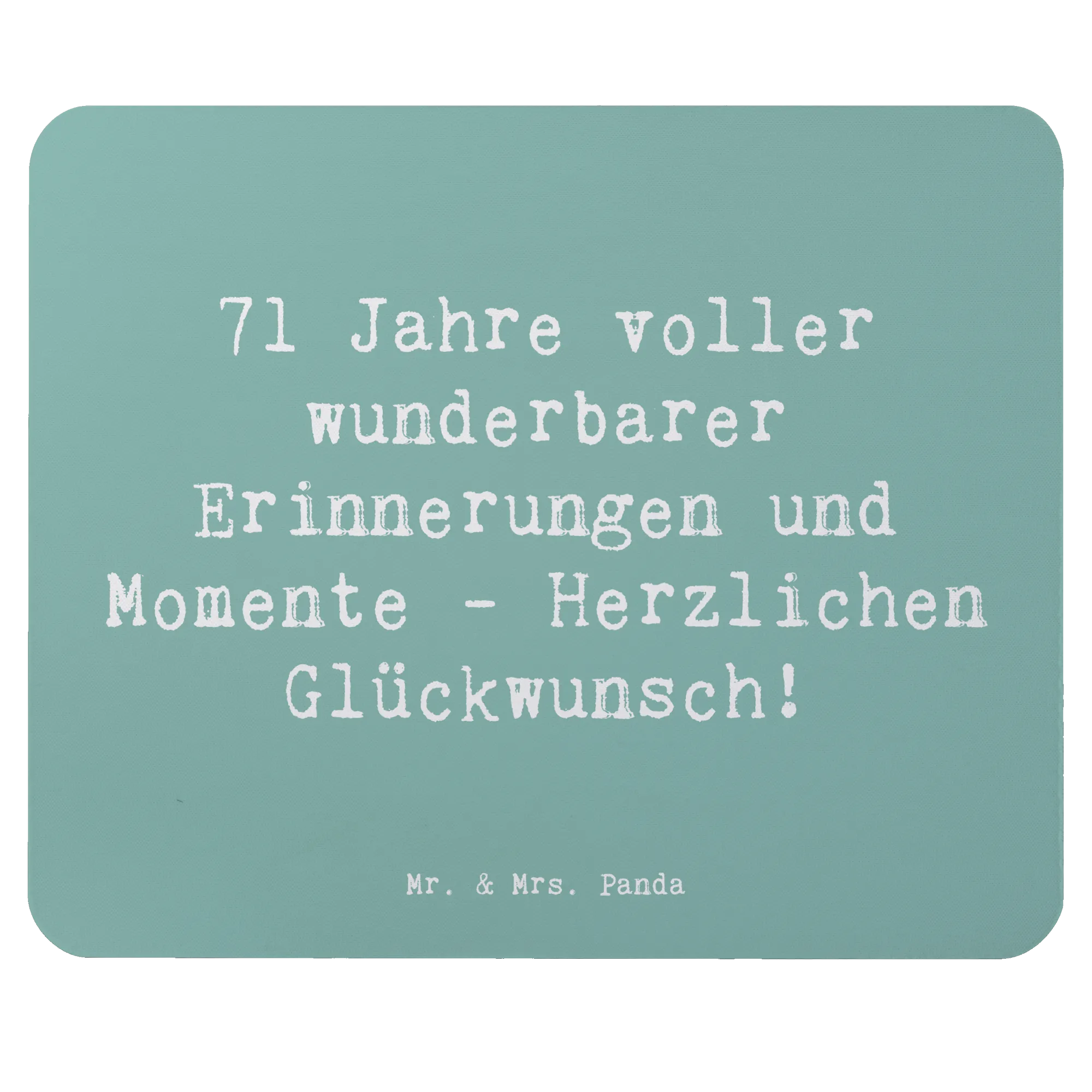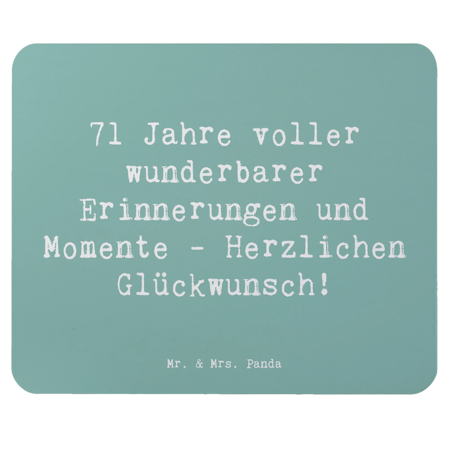 Suchst du nach dem perfekten Geschenk zum 71. Geburtstag? Dann ist das Mauspad mit dem liebevollen Spruch "71 Jahre voller wunderbarer Erinnerungen und Momente - Herzlichen Glückwunsch!" von Mr. & Mrs. Panda genau das Richtige!