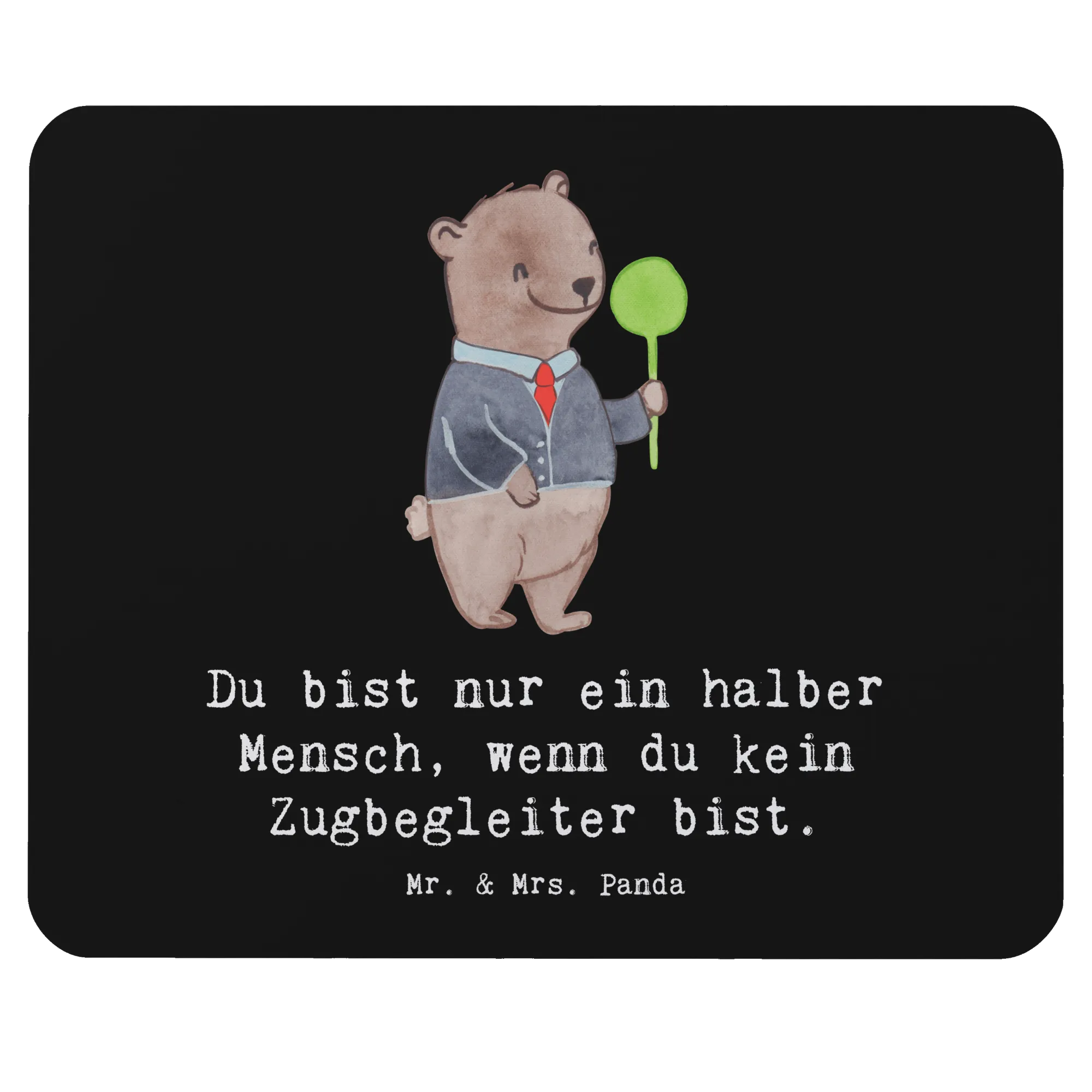 Entdecke das Mauspad "Zugbegleiter mit Herz" aus der kreativen Berufe Kollektion von Mr. & Mrs. Panda! Dieses liebevoll gestaltete Mauspad ist mehr als nur ein praktisches Büroaccessoire – es ist ein stilvolles und inspirierendes Highlight für jeden Arbeitsplatz oder das Homeoffice. Mit einem niedlichen Motiv eines Bären, der die Botschaft "Du bist nur ein halber Mensch, wenn du kein Zugbegleiter bist" trägt, zaubert es dir garantiert ein Lächeln ins Gesicht!