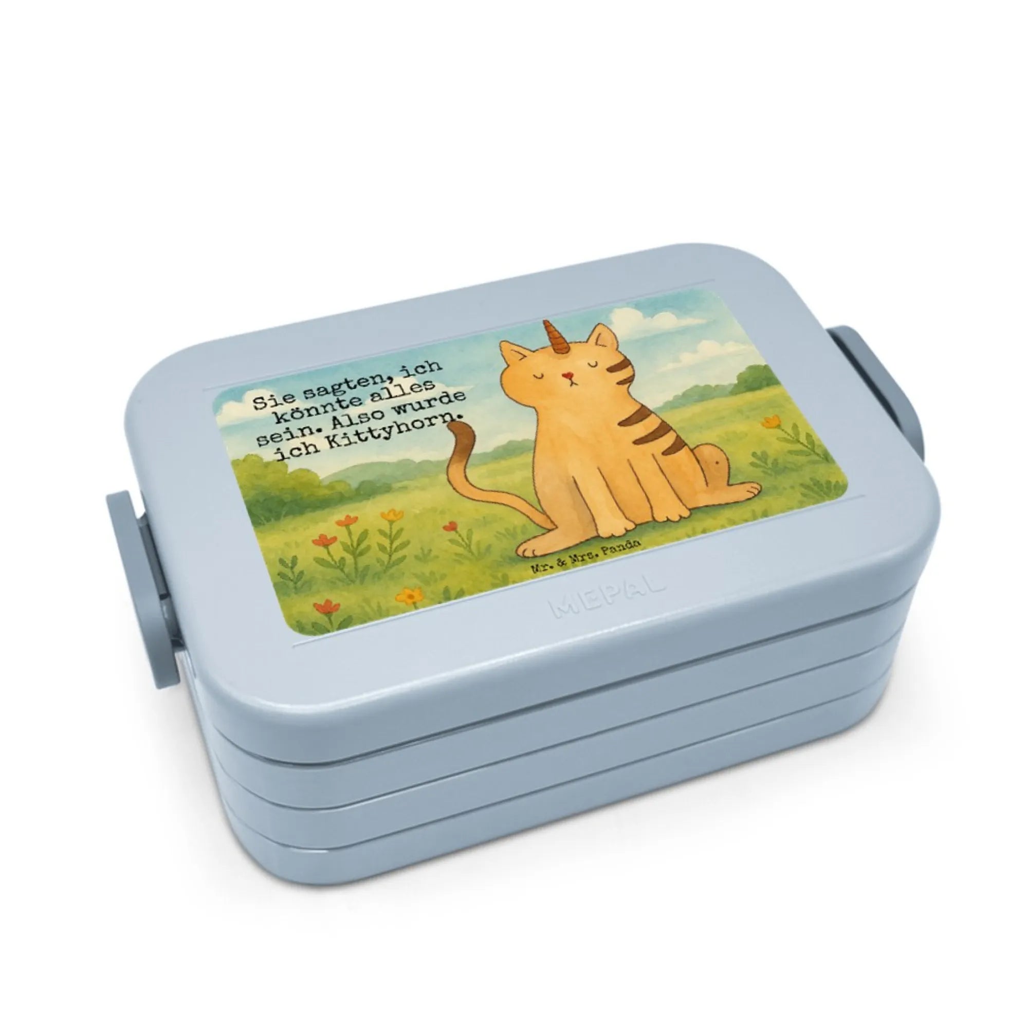 MEPAL Bentobox Einhorn Katze Design - mit Spruch - Blau Pastell