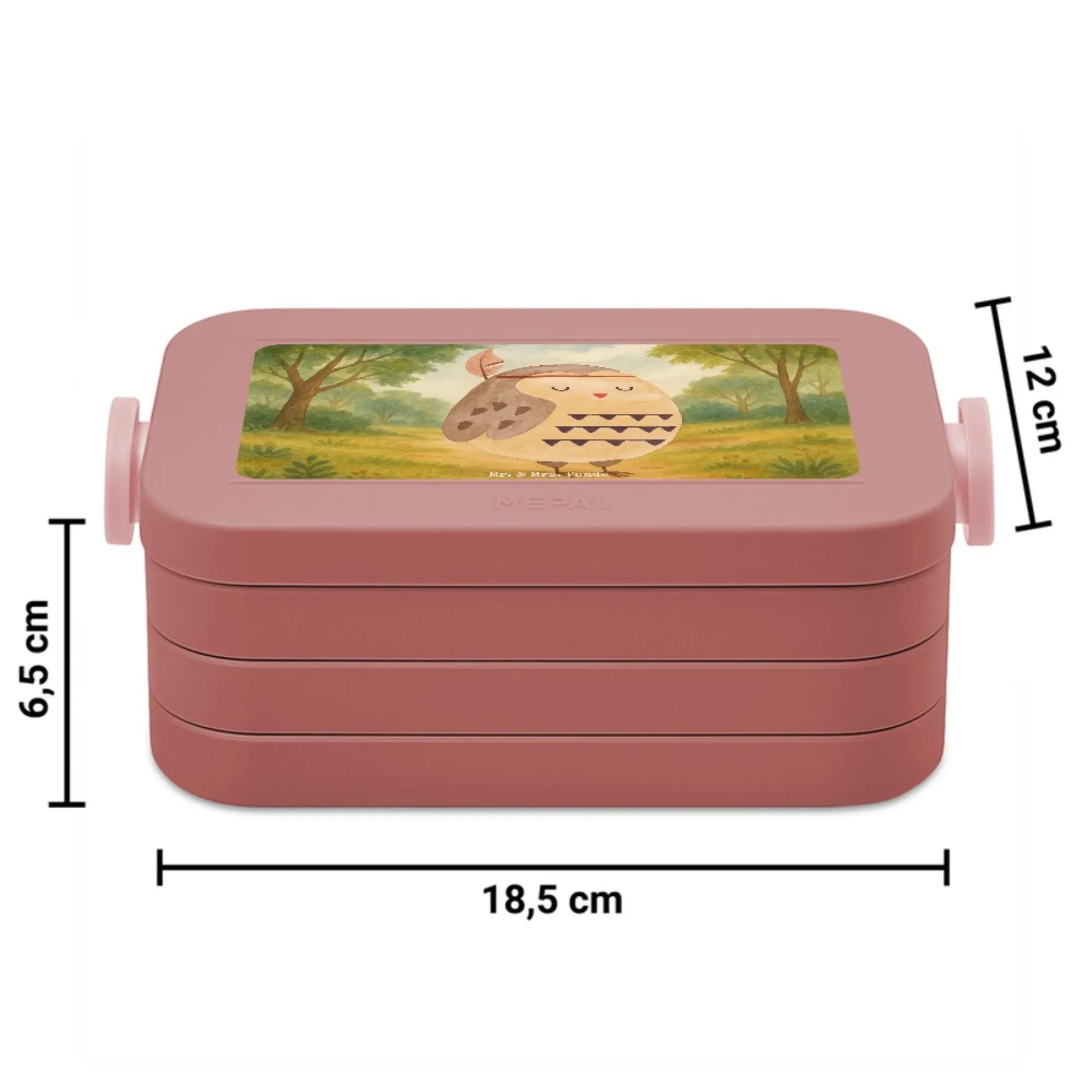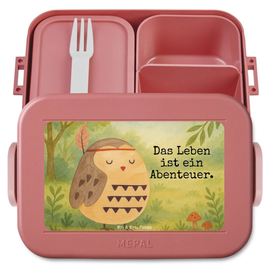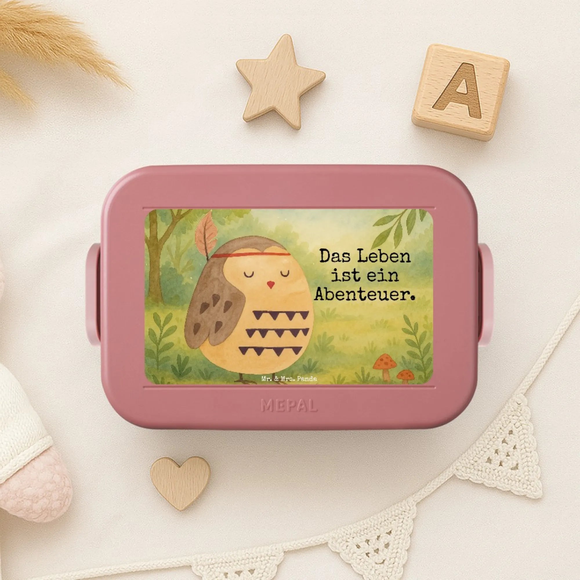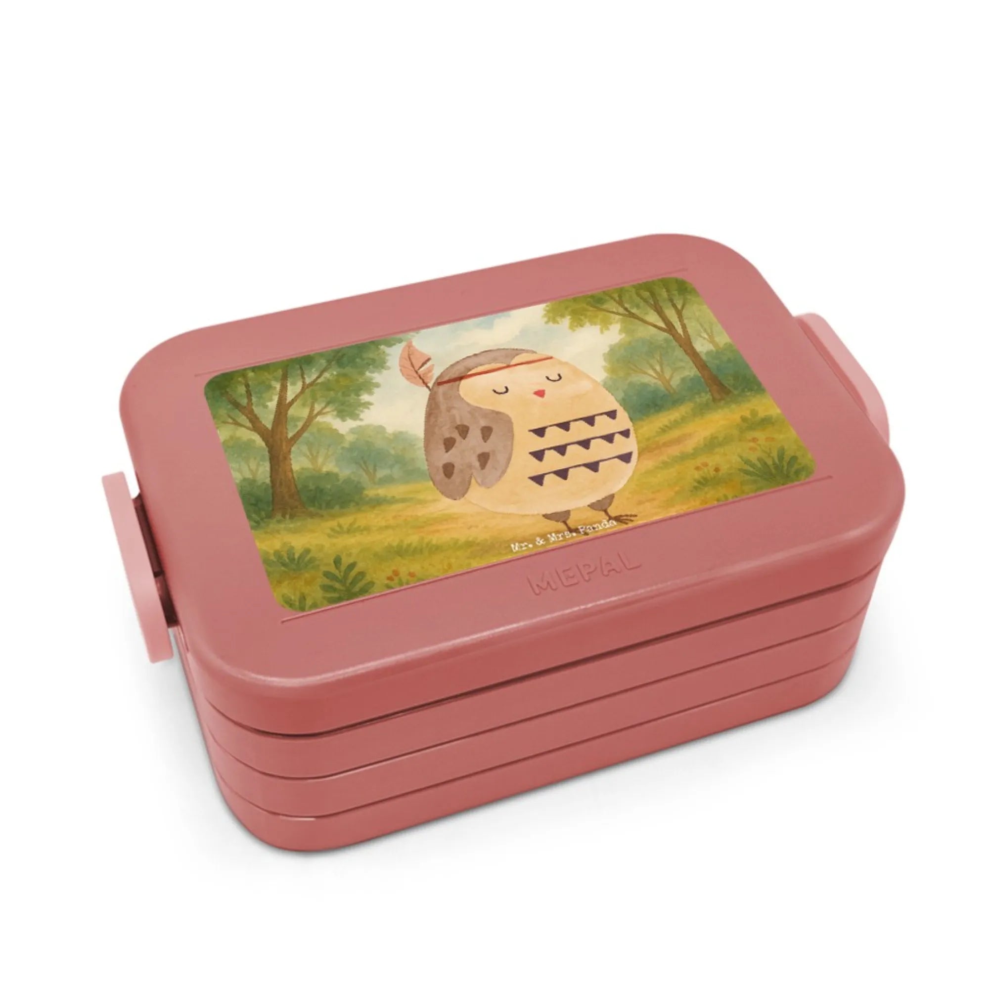 Bentobox Eule Federschmuck Design - mit Spruch - Rot Pastell