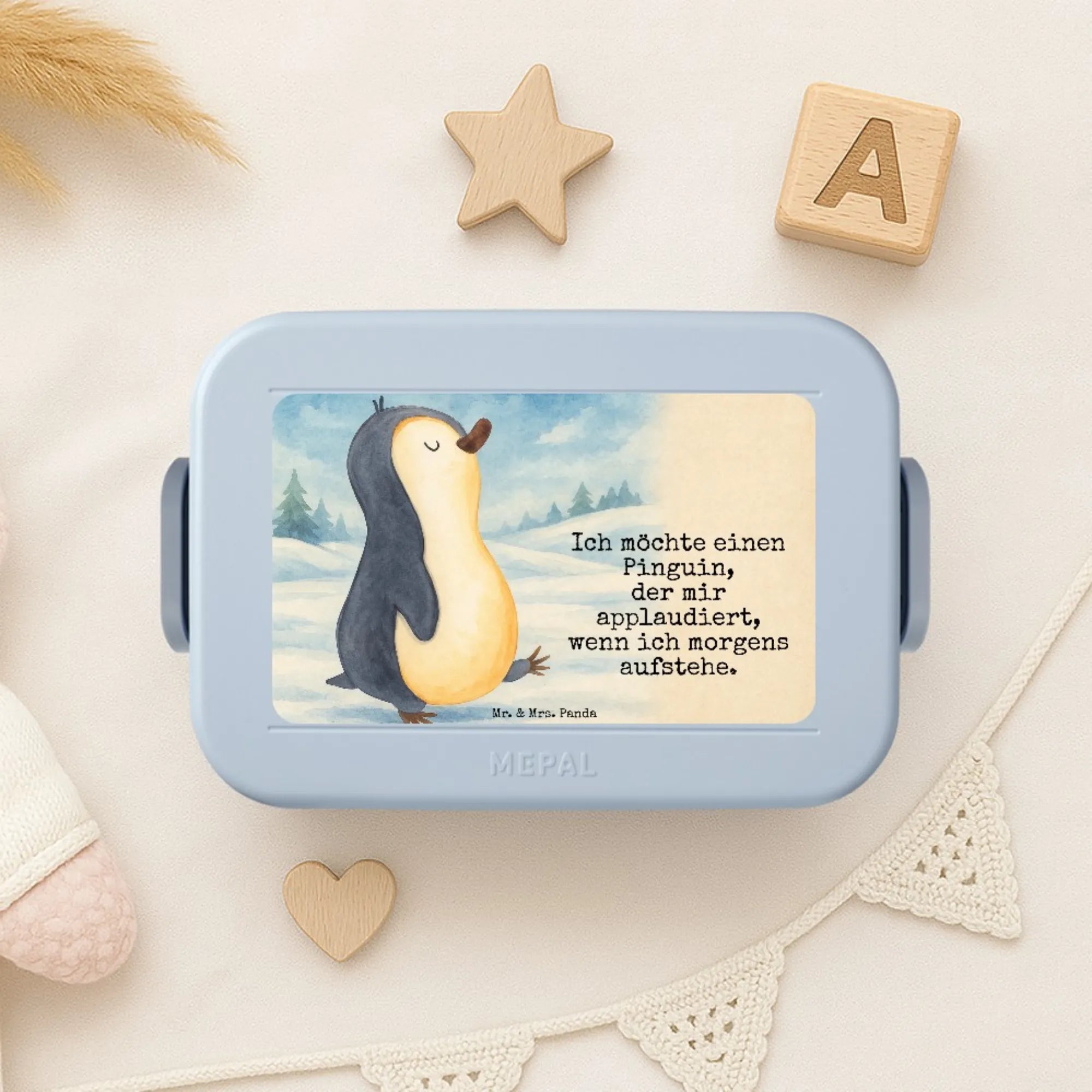 MEPAL Bentobox Pinguin marschieren Design - mit Spruch - Blau Pastell