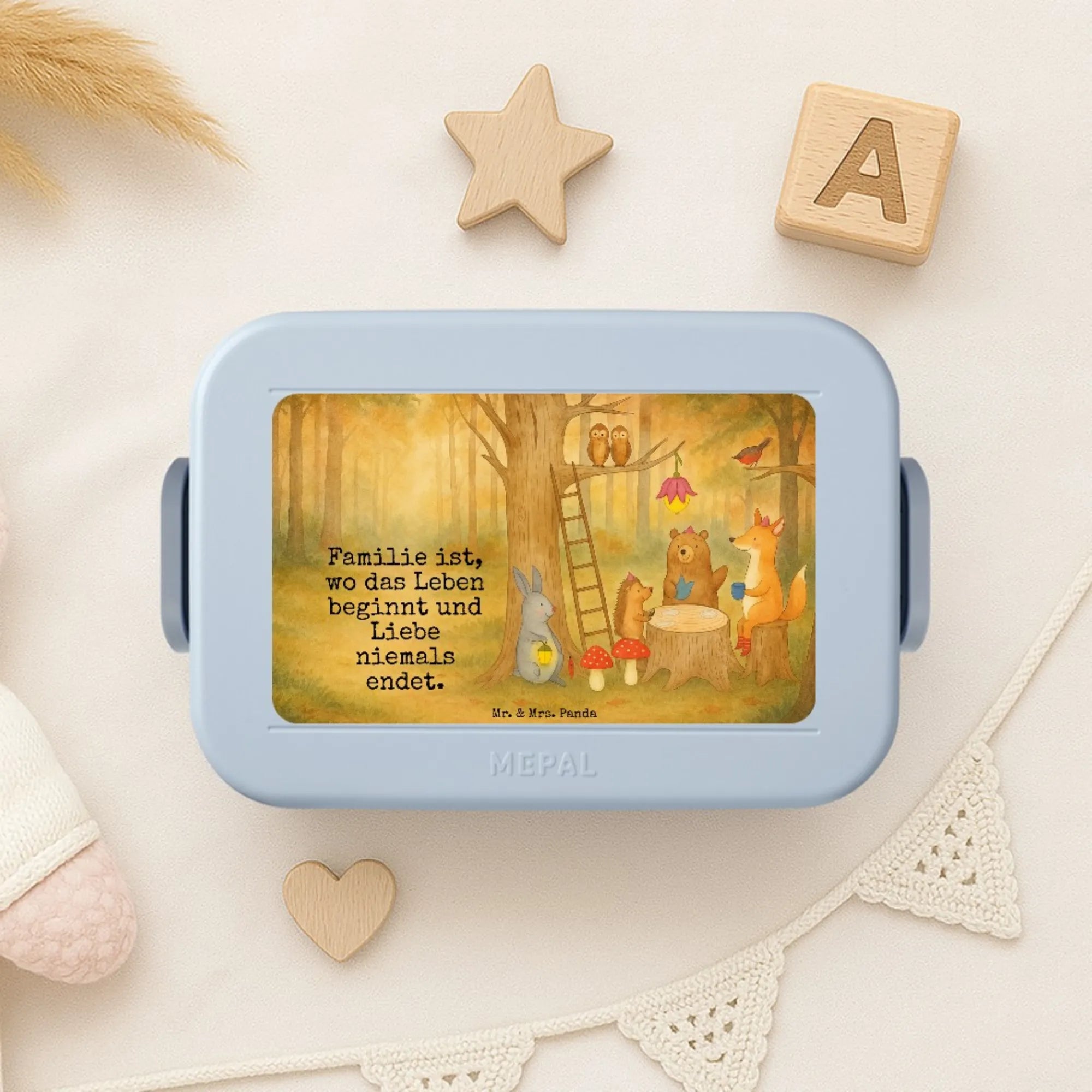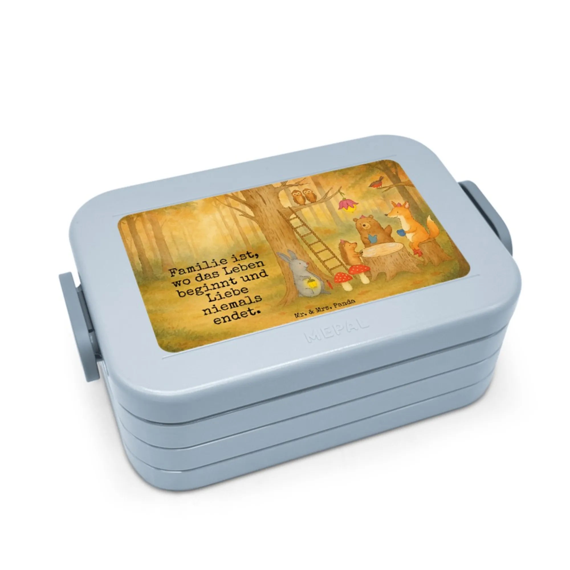 Essensbehälter Waldtiere Picknick Design - mit Spruch - Blau Pastell