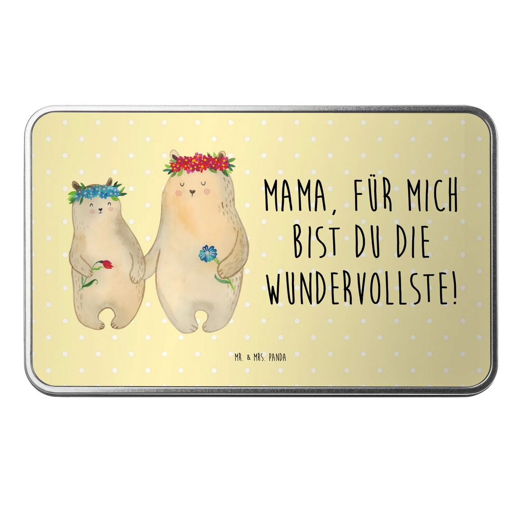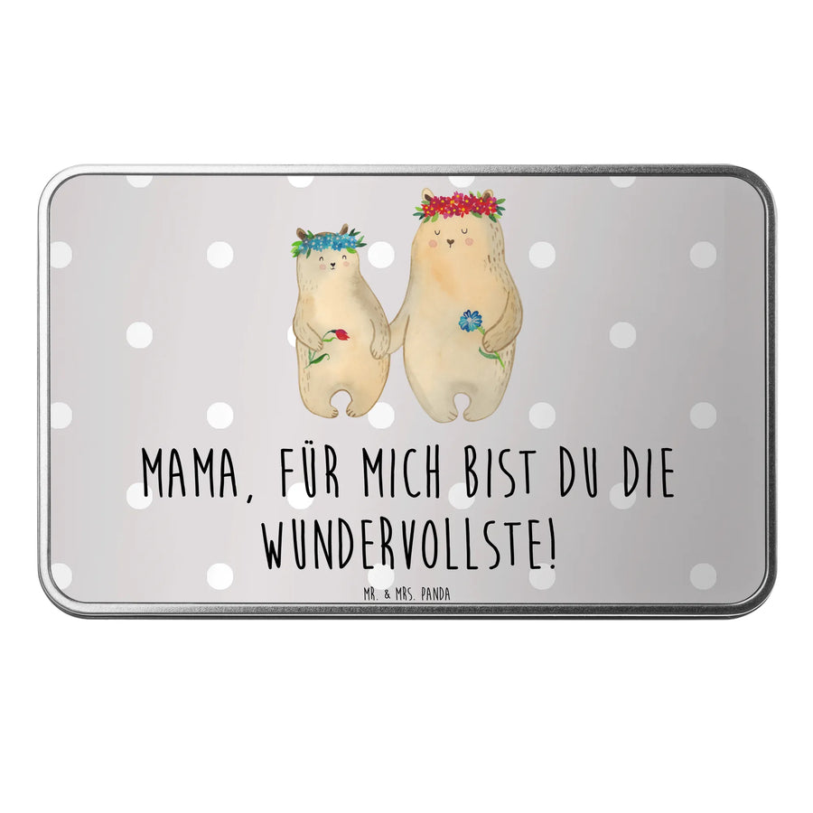 Entdecke die bezaubernde Metalldose rechteckig von Mr. & Mrs. Panda, die ideal für alle, die ihrer Mama eine ganz besondere Freude bereiten möchten! Diese wunderschöne Blechdose begeistert mit ihrem fröhlichen Motiv von Bären mit Blumenkranz, die das Gefühl von Liebe und Verbundenheit perfekt verkörpern.