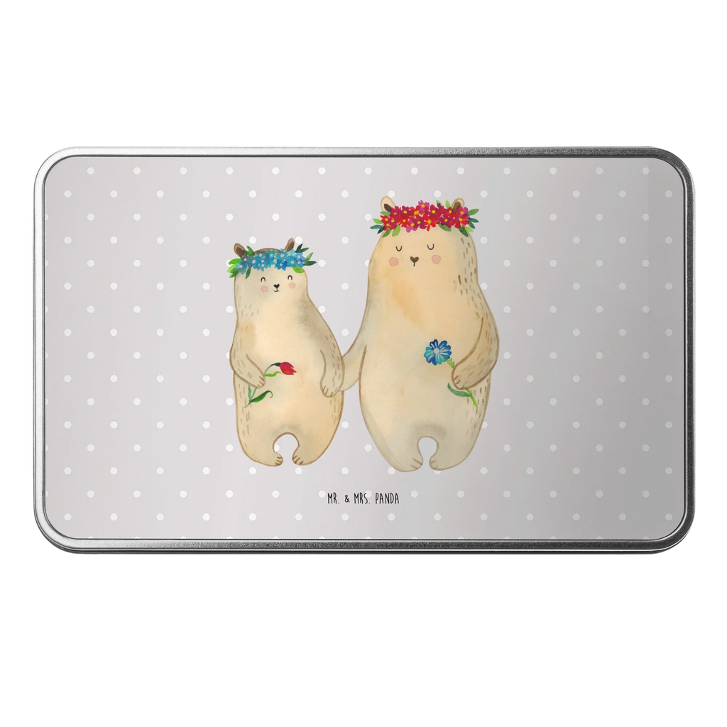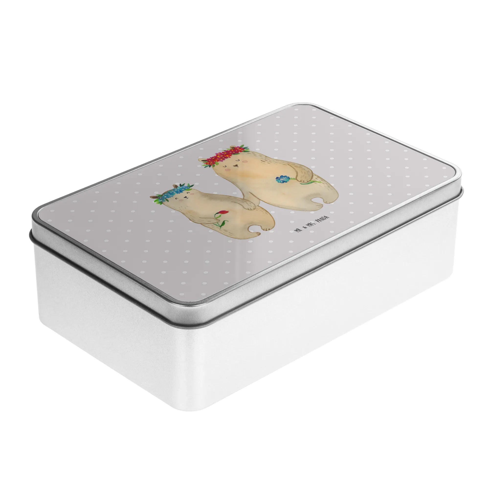 Metalldose rechteckig Bären mit Blumenkranz - mit Spruch - Grau Pastell