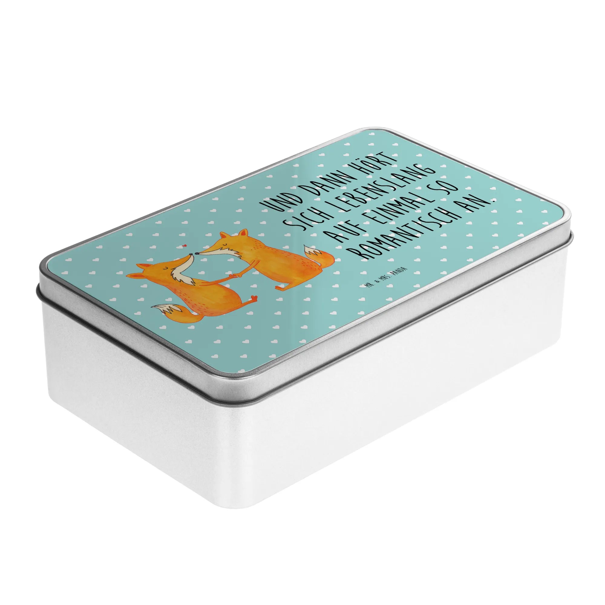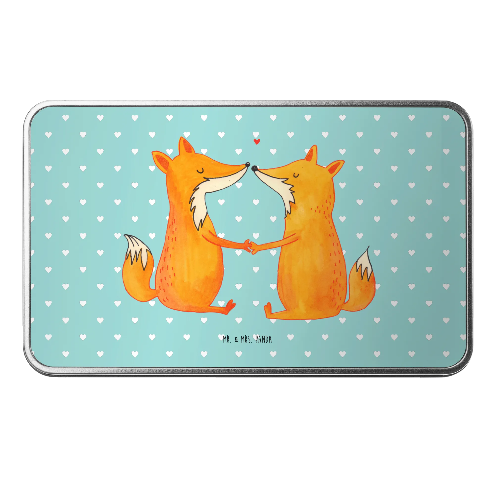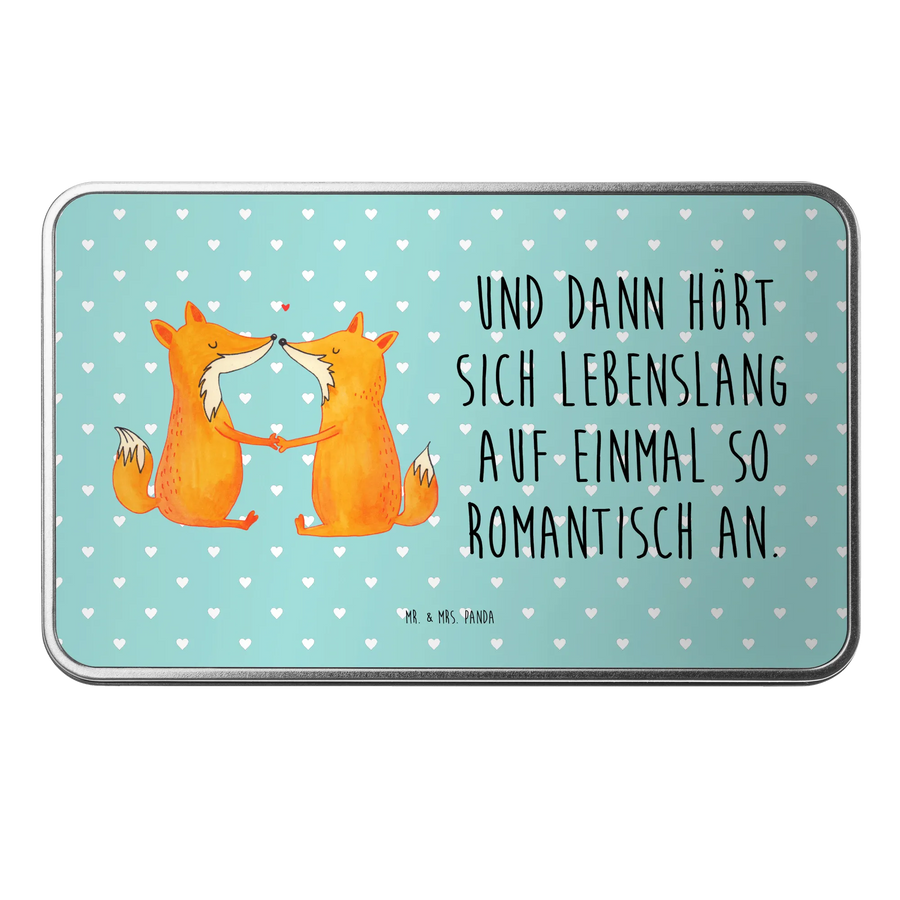 Die wunderschöne Metalldose rechteckig mit dem einzigartigen Motiv "Füchse Liebe" von Mr. & Mrs. Panda ist der perfekte Begleiter für all diejenigen, die kleinen Dingen im Leben eine große Bedeutung schenken.