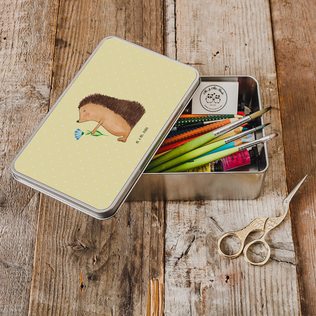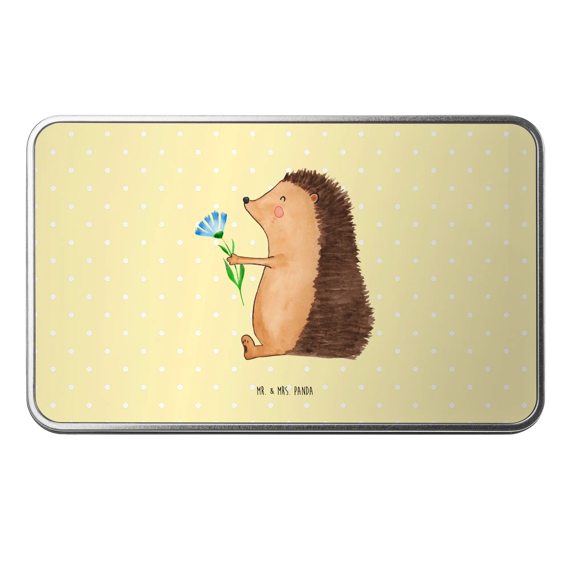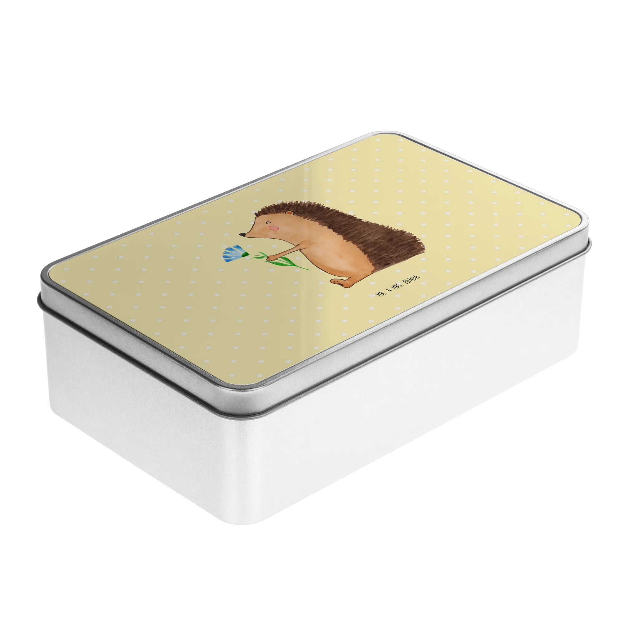 Entdecke die zauberhafte Metalldose rechteckig mit dem süßen Motiv "Igel mit Blume" aus der beliebten Small World Kollektion von Mr. & Mrs. Panda! Diese dekorative Aufbewahrungsdose bringt nicht nur gute Laune in dein Zuhause, sondern ist auch das perfekte Geschenk für all jene, die sich eine kleine Freude machen möchten. Ob als Keksdose oder als praktische Vorratsbox, hier finden deine Leckereien und sonstigen Schätze Platz.