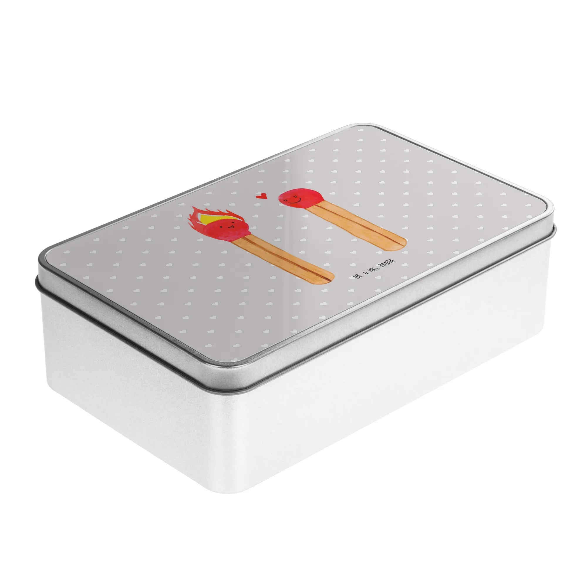 Die wunderschöne rechteckige Metalldose von Mr. & Mrs. Panda ist das perfekte Geschenk für alle verliebten Seelen! Mit einem liebevollen Motiv von zwei fröhlichen Streichhölzern, die sich zueinander neigen, bringt diese Dose ein Lächeln auf jedes Gesicht. Das linke Streichholz flüstert seine Gefühle mit einem roten Kopf und gelben Flammen, während das rechte Streichholz ebenfalls voller Freude ist und ein Herz zwischen beiden strahlt. Dieser besondere Anblick symbolisiert die warme Verbundenheit zwischen Partnern und eignet sich hervorragend als Geschenk für Verliebtsein, für den Freund, die Freundin oder den Ehepartner.