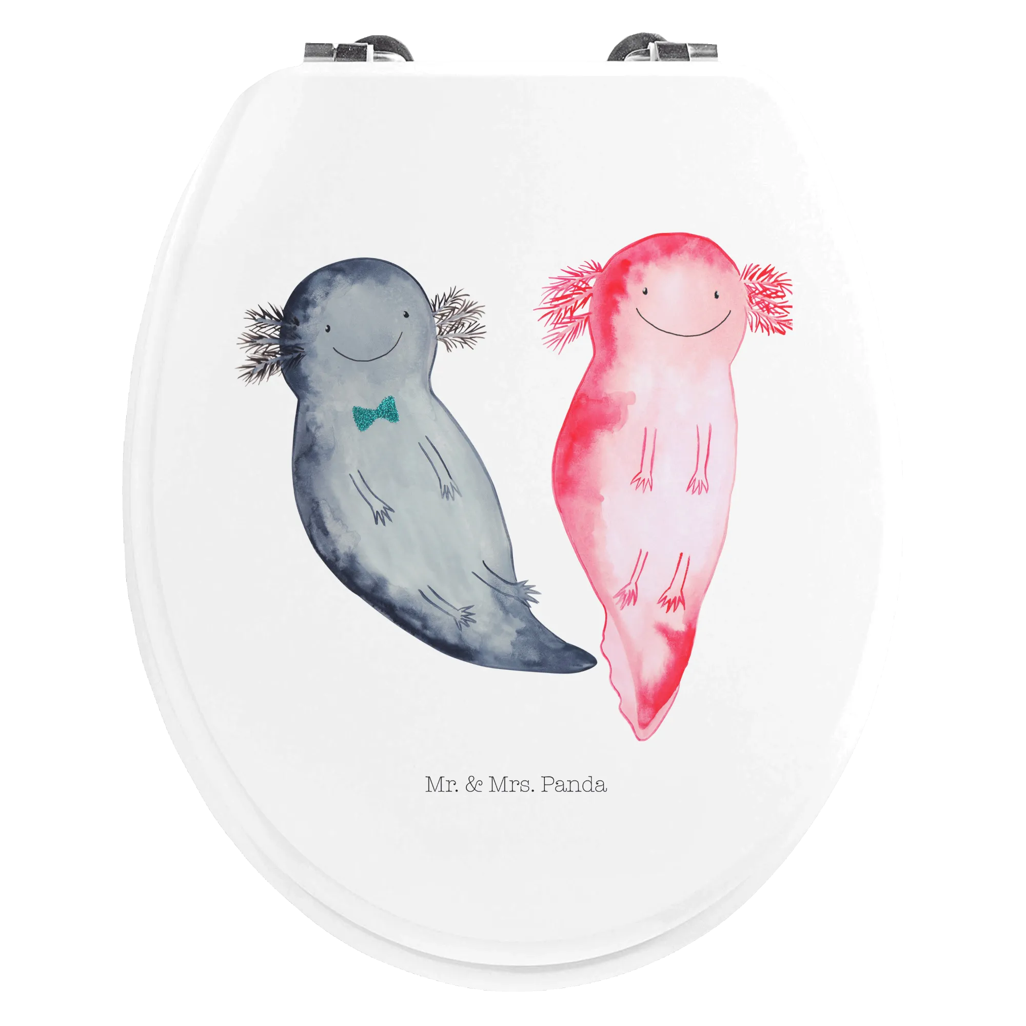 Die Axolotl Kollektion von Mr. & Mrs. Panda wurde von Mrs. Panda liebevoll gezeichnet und steckt voller Persönlichkeit. Wenn Du also ein Geschenk zum Valentinstag, Jahrestag oder einfach eine süße Überraschung für Deinen Freund, Ehemann oder Verlobten suchst, dann ist dieser Toilettendeckel eine wunderbare Wahl. Bring Liebe und Lebensfreude aufs stille Örtchen – mit Axel und Lotte an Deiner Seite! 🛁🌊