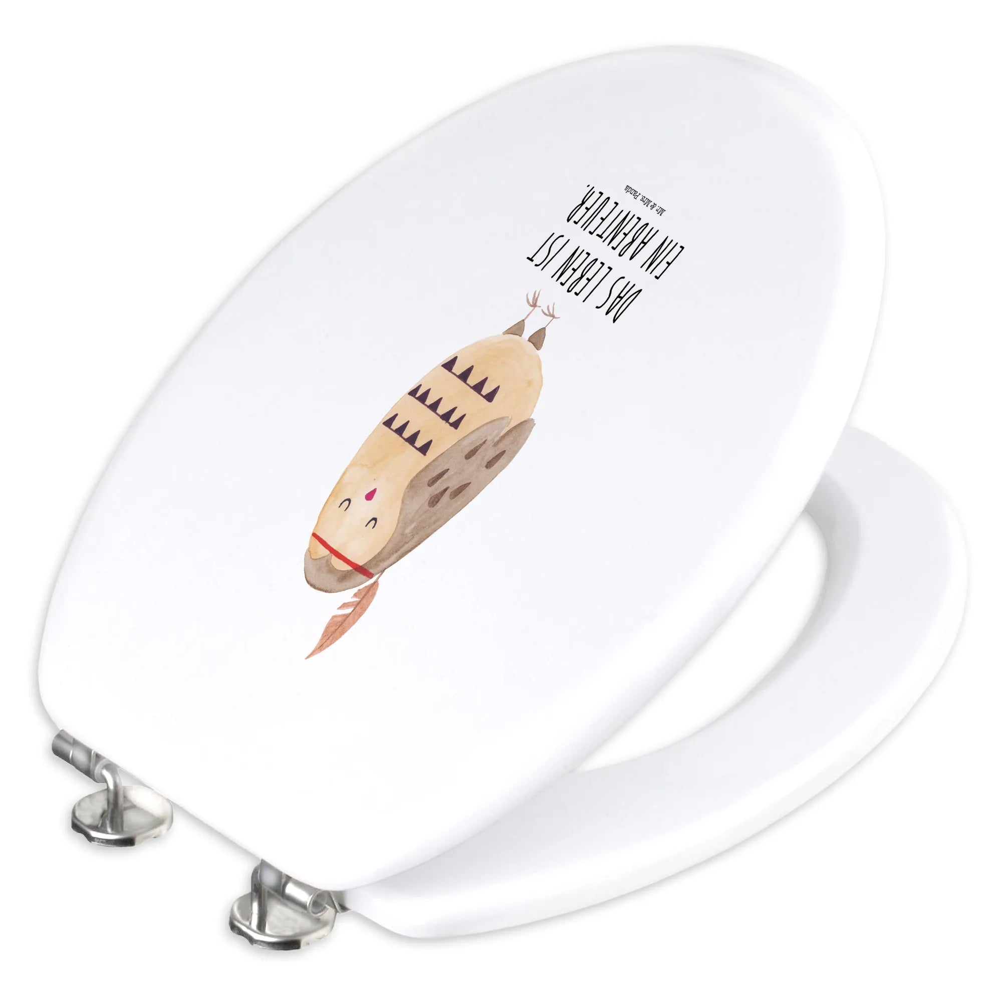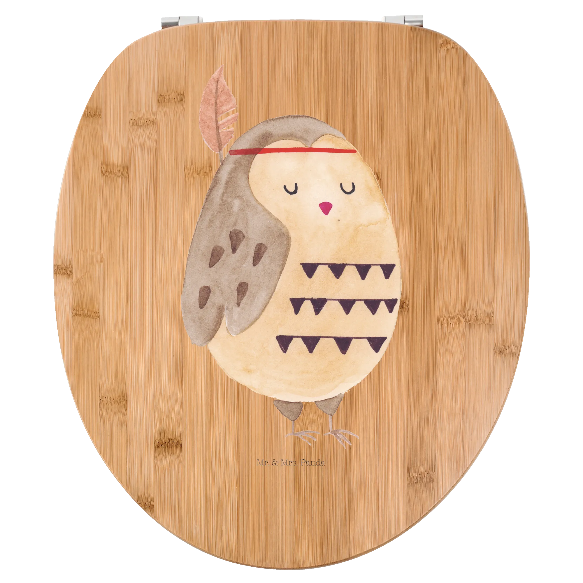 Motiv WC Sitz Eule Federschmuck - mit Spruch - Bambus - Transparent