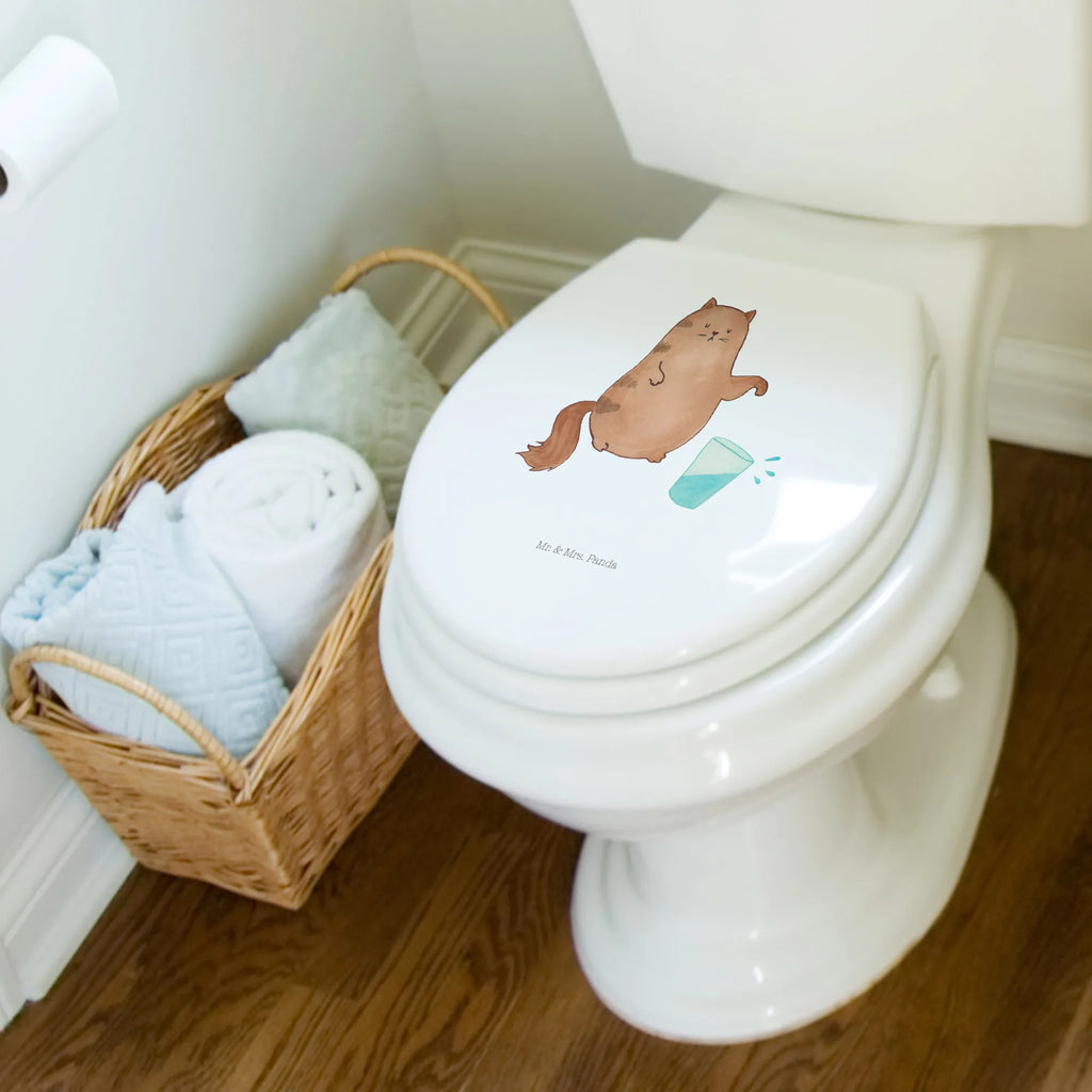 Entdecke unseren wunderschönen Motiv WC Sitz Katze Wasserglas aus der zauberhaften Katzen-Kollektion von Mr. & Mrs. Panda! Dieser einzigartige Toilettensitz ist nicht nur ein praktisches Badaccessoire, sondern auch ein liebevolles Statement für alle Katzenliebhaber und Katzenfans. Jedes einzelne Design zeigt eine charmante kleine Katze, die ein Wasserglas umstößt – eine perfekte Kombination aus Humor und Liebe zu unseren pelzigen Freunden. Der Slogan "Katzen werfen Sachen runter, um die Schwerkraft zu erforschen. Sie sind Wissenschaftler, keine Arschlöcher." macht diesen WC-Sitz zu einem witzigen und stilvollen Hingucker in deinem Badezimmer.