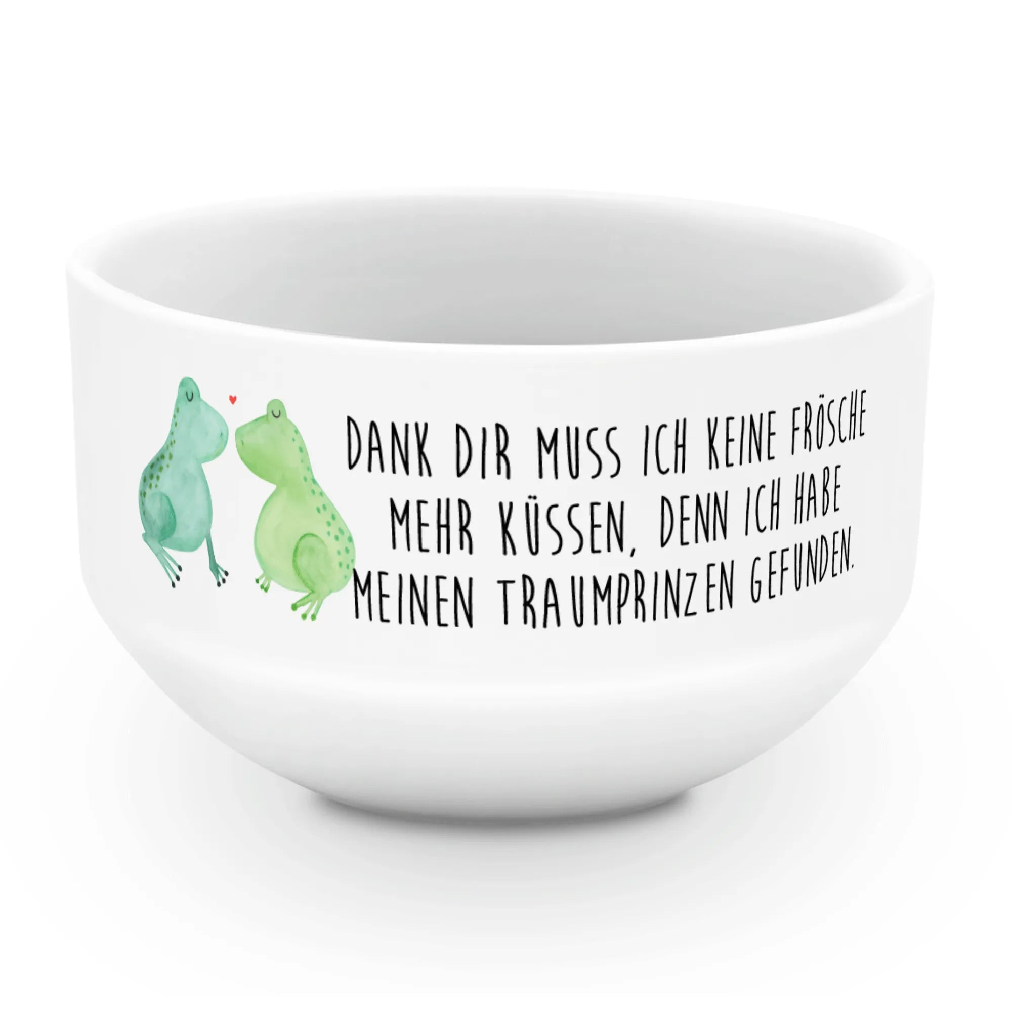 Verliebt, verspielt und zum Dahinschmelzen: Die Müslischale „Frosch Liebe“ aus der Mr. & Mrs. Panda Liebe-Kollektion macht jeden Morgen zu einem kleinen Liebesfest. Zwei entzückende handgezeichnete Frösche schauen sich liebevoll an, ein rotes Herz schwebt zwischen ihren Köpfen und der charmante Spruch „Dank dir muss ich keine Frösche mehr Küssen, denn ich habe meinen Traumprinzen gefunden.“ sorgt garantiert für ein Lächeln beim Frühstück. 💚