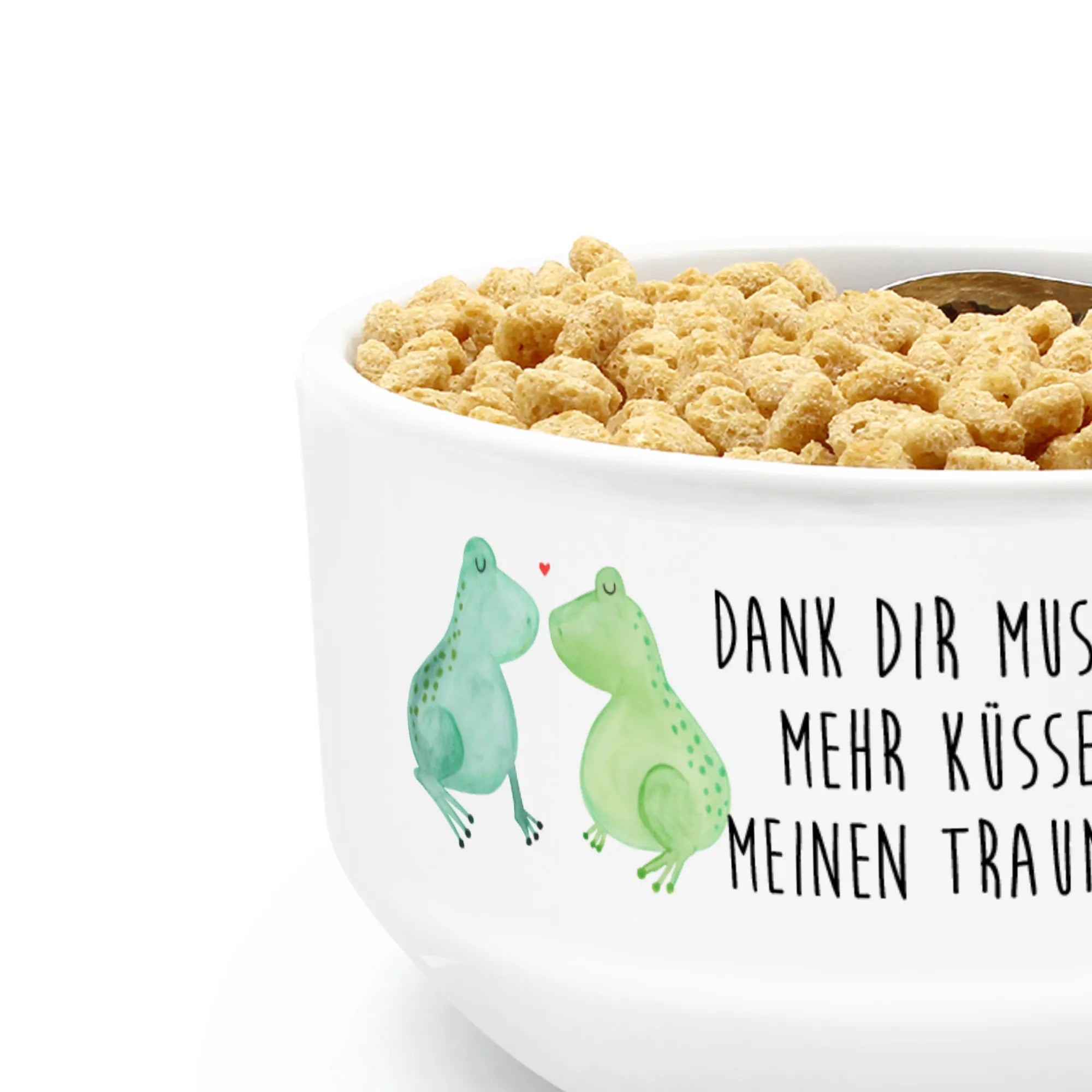 Kurz und liebevoll: Verschenke ein Stück Glück für den Frühstückstisch – mit der Mr. & Mrs. Panda Müslischale „Frosch Liebe“. Nicht personalisierbar, aber mit ganz viel Herz gemacht.
