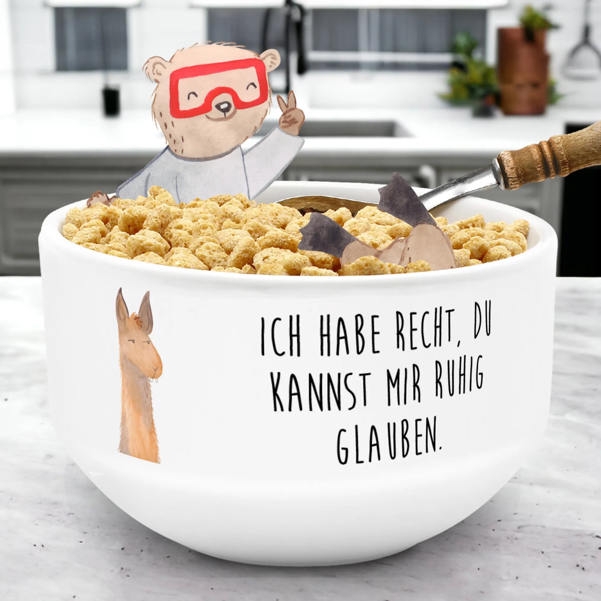 Die wunderschöne Müslischale mit dem lustigen Lamakopf Motiv "Genervt" aus der einzigartigen Lama-Kollektion von Mr. & Mrs. Panda ist das perfekte Geschenk für alle, die Lamas lieben und ein wenig Humor in ihren Alltag bringen möchten. Mit dem süßen Lama, das genervt zur Seite schaut, zauberst du jedem ein Lächeln ins Gesicht!