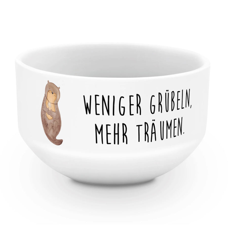 Hol dir ein Stück Meer und Otterliebe auf den Frühstückstisch! Die süße Müslischüssel zeigt einen charmanten Seeotter mit kleinem Muschelmedaillon und dem liebevollen Spruch „Weniger grübeln, mehr träumen.“ – ideal für alle, die morgens ein Lächeln brauchen und ein bisschen Motivation mögen. 🦦✨