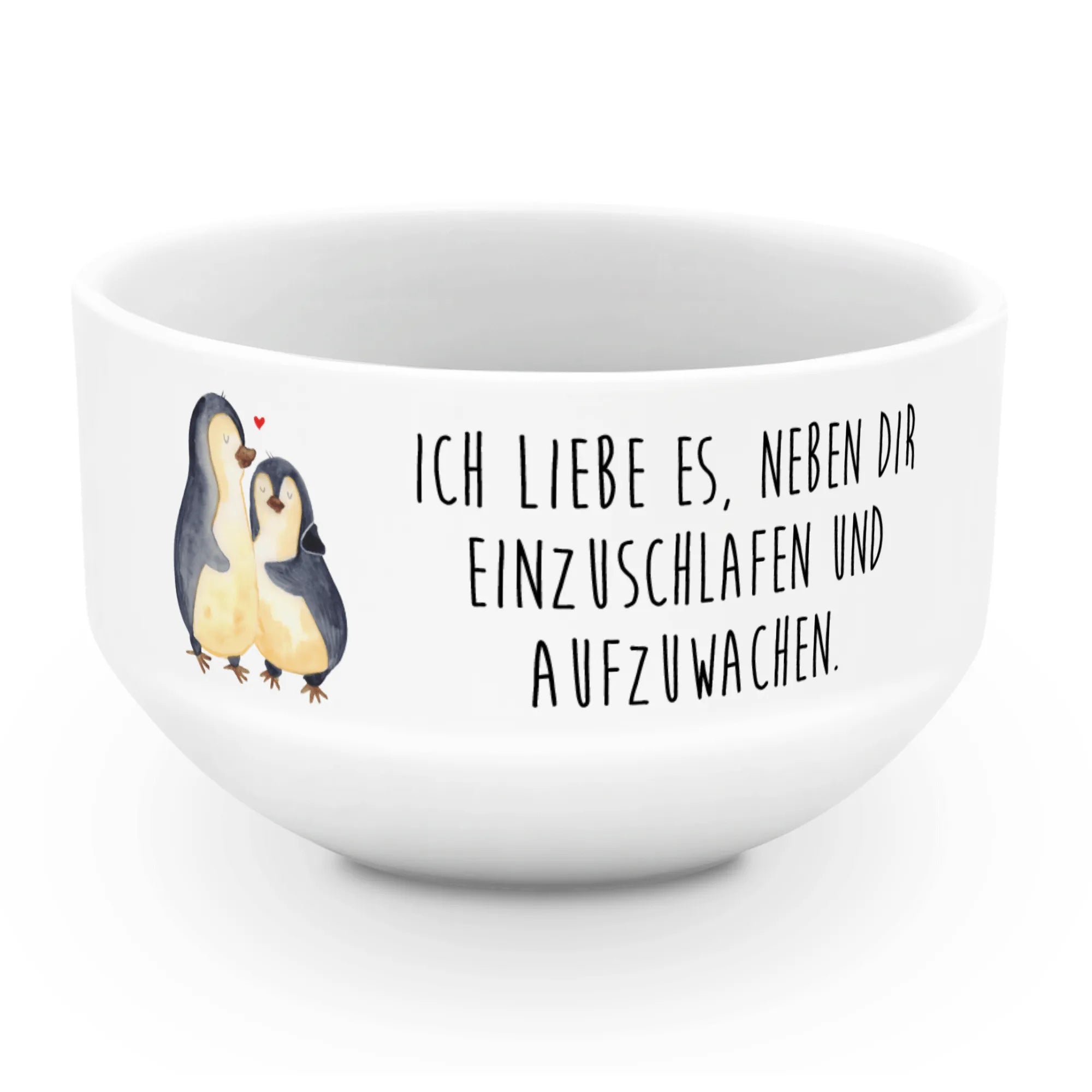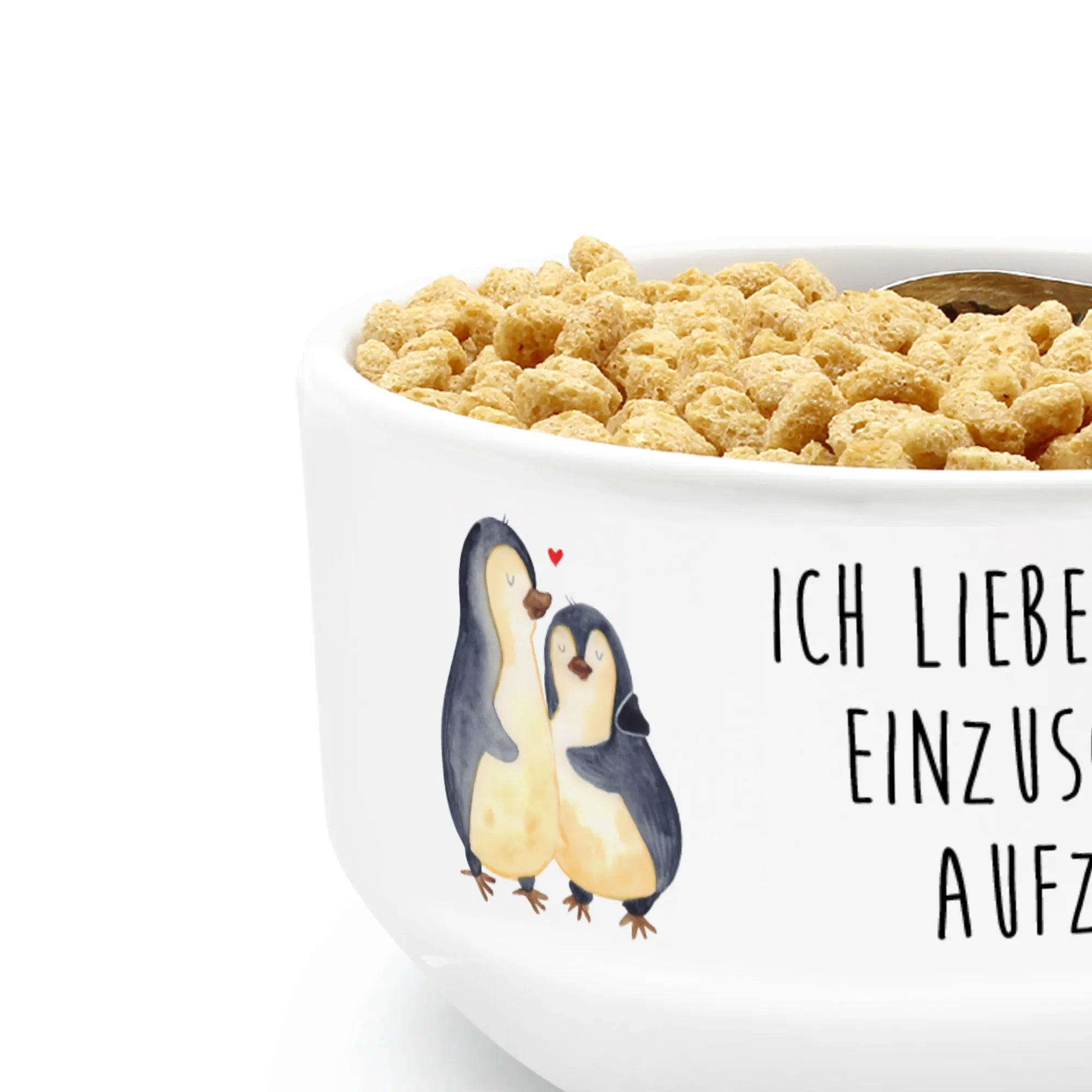 Diese Müslischüssel aus hochwertiger Keramik ist nicht nur funktional, sondern auch ein echtes Liebesbeweis. Sie zeigt, wie wichtig dir deine bessere Hälfte ist und sorgt für ein strahlendes Lächeln am Frühstückstisch. Die zwei niedlichen Pinguine, die sich aneinander kuscheln, und das kleine rote Herz über ihnen drücken wunderbar aus, was Liebe bedeutet.