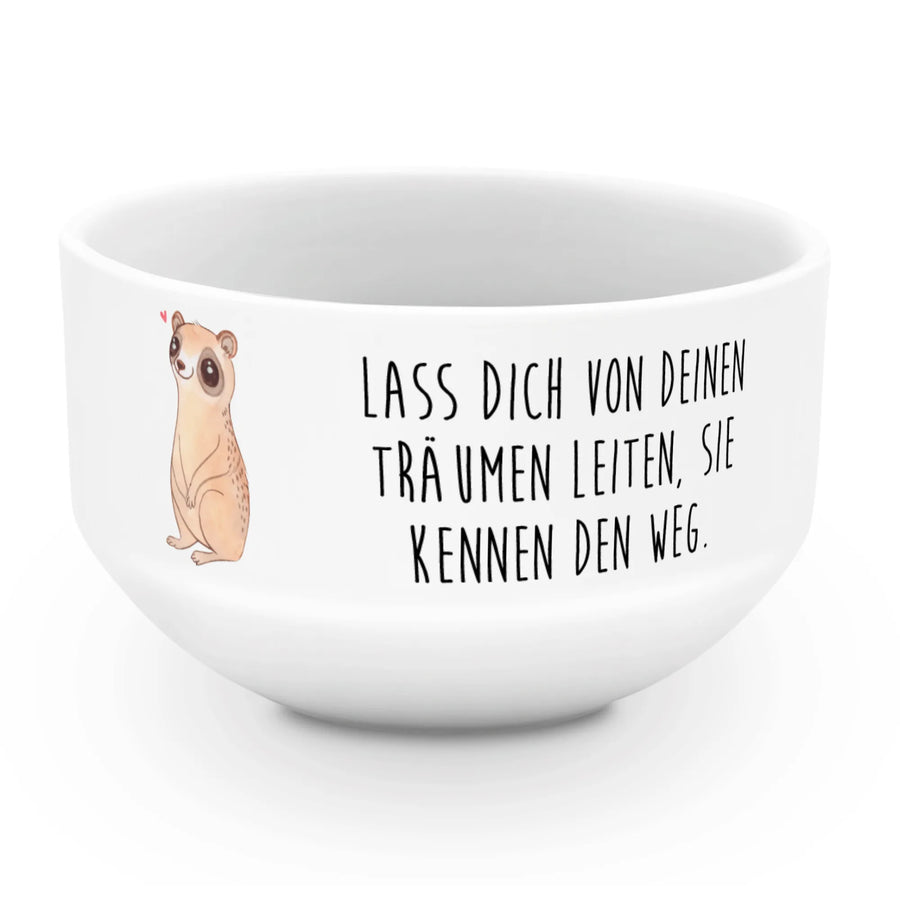Mit ihrem fröhlichen Plumplori-Motiv und dem inspirierenden Spruch 'Lass dich von deinen Träumen leiten, sie kennen den Weg.' ist sie ideal, um jeden Morgen mit guter Laune zu beginnen. Ob für das leckere Müsli, den bunten Obstsalat oder die Nachspeise – diese Müslischale bringt Freude in jede Mahlzeit.