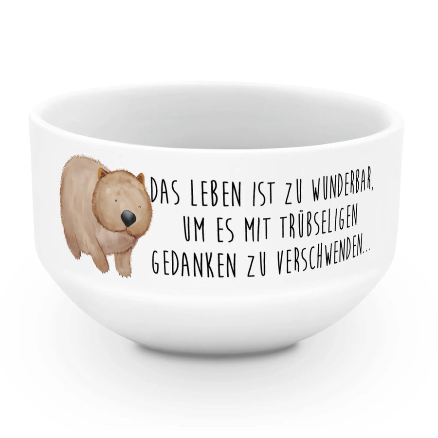 Diese Müslischale ist nicht nur praktisch, sondern auch ein echtes Kunstwerk. Der süße Wombat entzückt mit seinem charmanten Blick und lädt dich dazu ein, das Leben zu genießen. Unter dem Motto 'Das Leben ist zu wunderbar, um es mit trübseligen Gedanken zu verschwenden...' kannst du jeden Bissen deines Frühstücks in vollen Zügen auskosten.