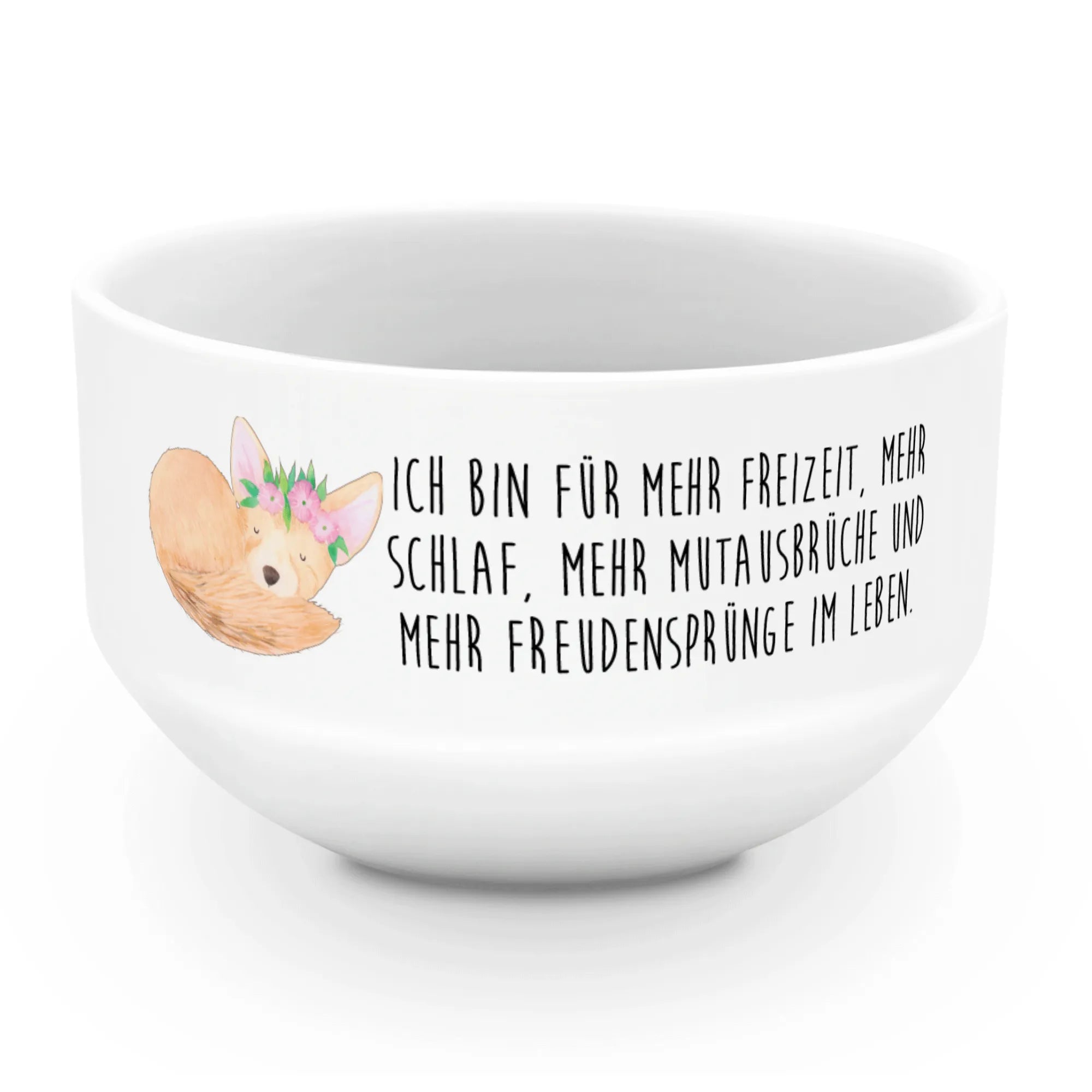Entdecke die bezaubernde Müslischale "Wüstenfuchs Blumenkranz" von Mr. & Mrs. Panda – das perfekte Geschenk für alle, die das Besondere und Exotische lieben! Diese wunderschöne Müslischüssel bringt nicht nur Farbe in dein Frühstück, sondern auch ein Stück Afrika direkt auf deinen Tisch. Mit ihrem liebevoll gestalteten Motiv eines süßen Wüstenfuchses, der sanft mit einem Blumenkranz geschmückt ist, versprüht sie Lebensfreude und unbeschwerte Stimmung. Egal, ob du sie für dein eigenes Frühstück oder als Geschenk für Freunde und Familie verwenden möchtest – diese Müslischale ist ein wahrer Glücksbringer!
