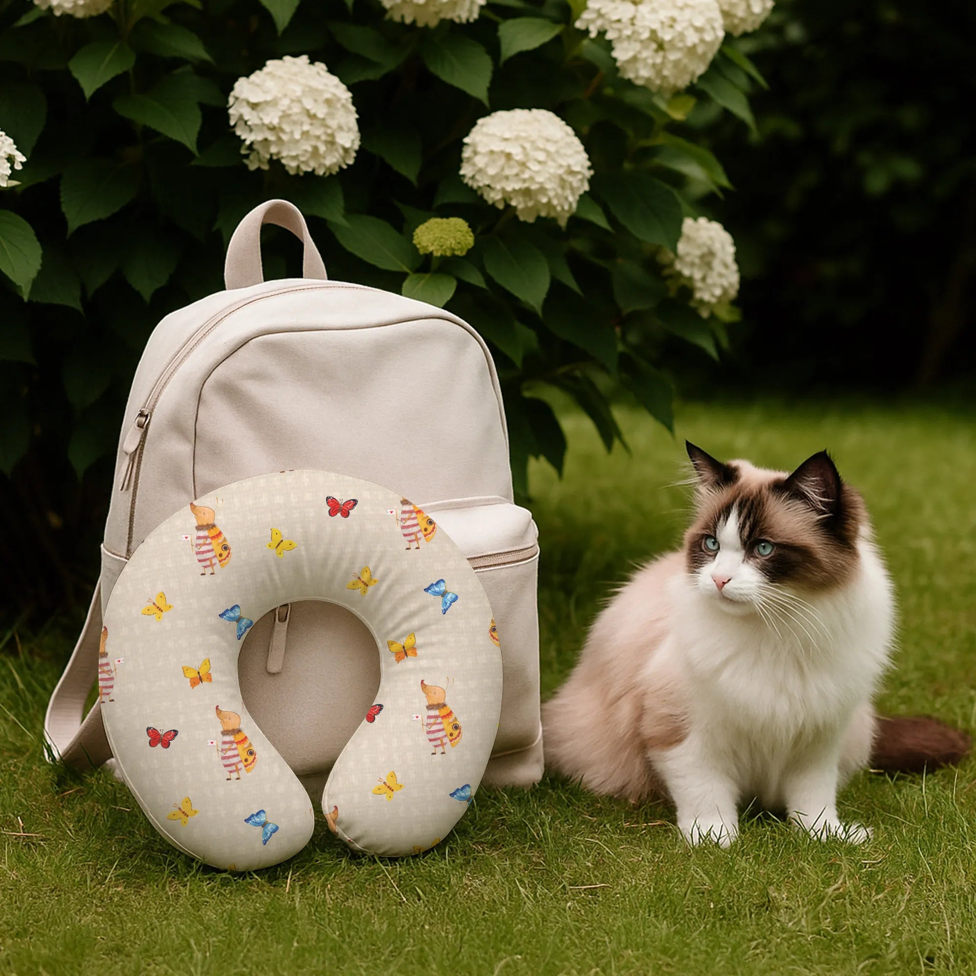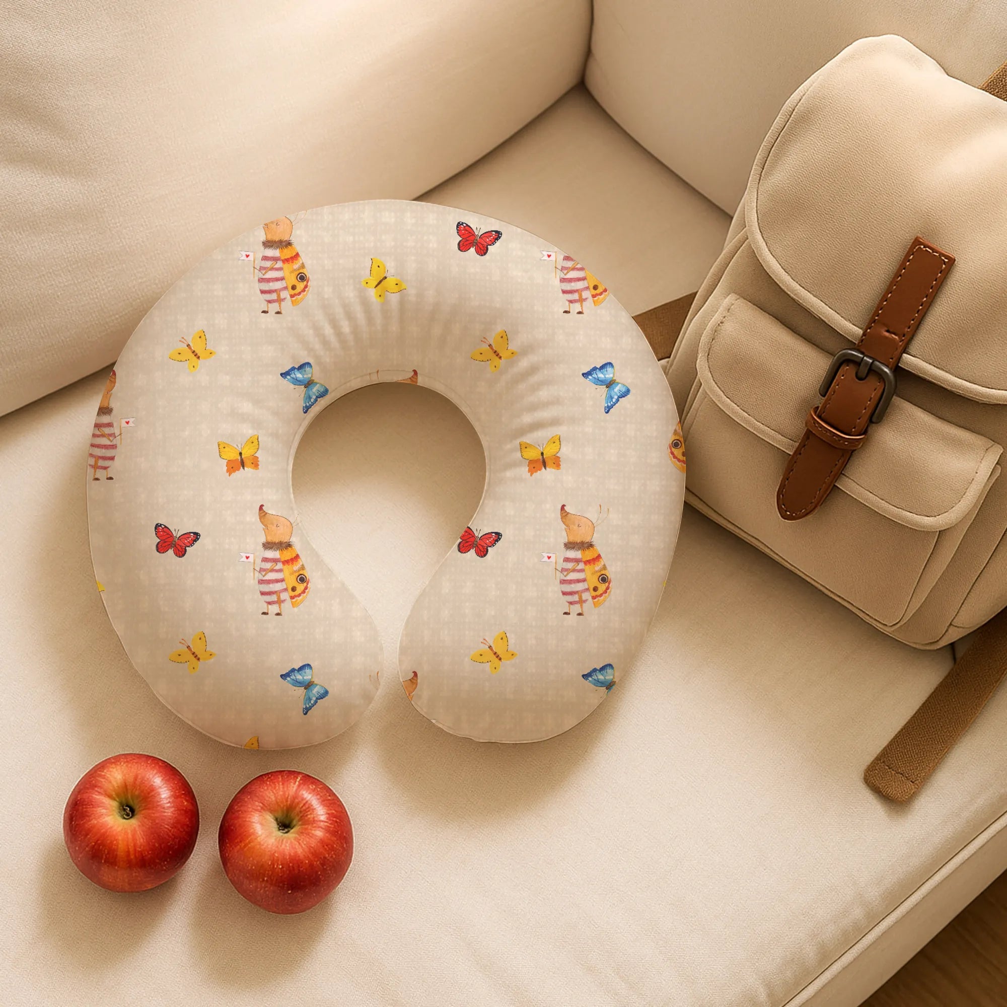 Kuscheliges Nackenkissen & Reiseschlafkissen „Nachtfalter mit Fähnchen“ – Dein fröhlicher Begleiter