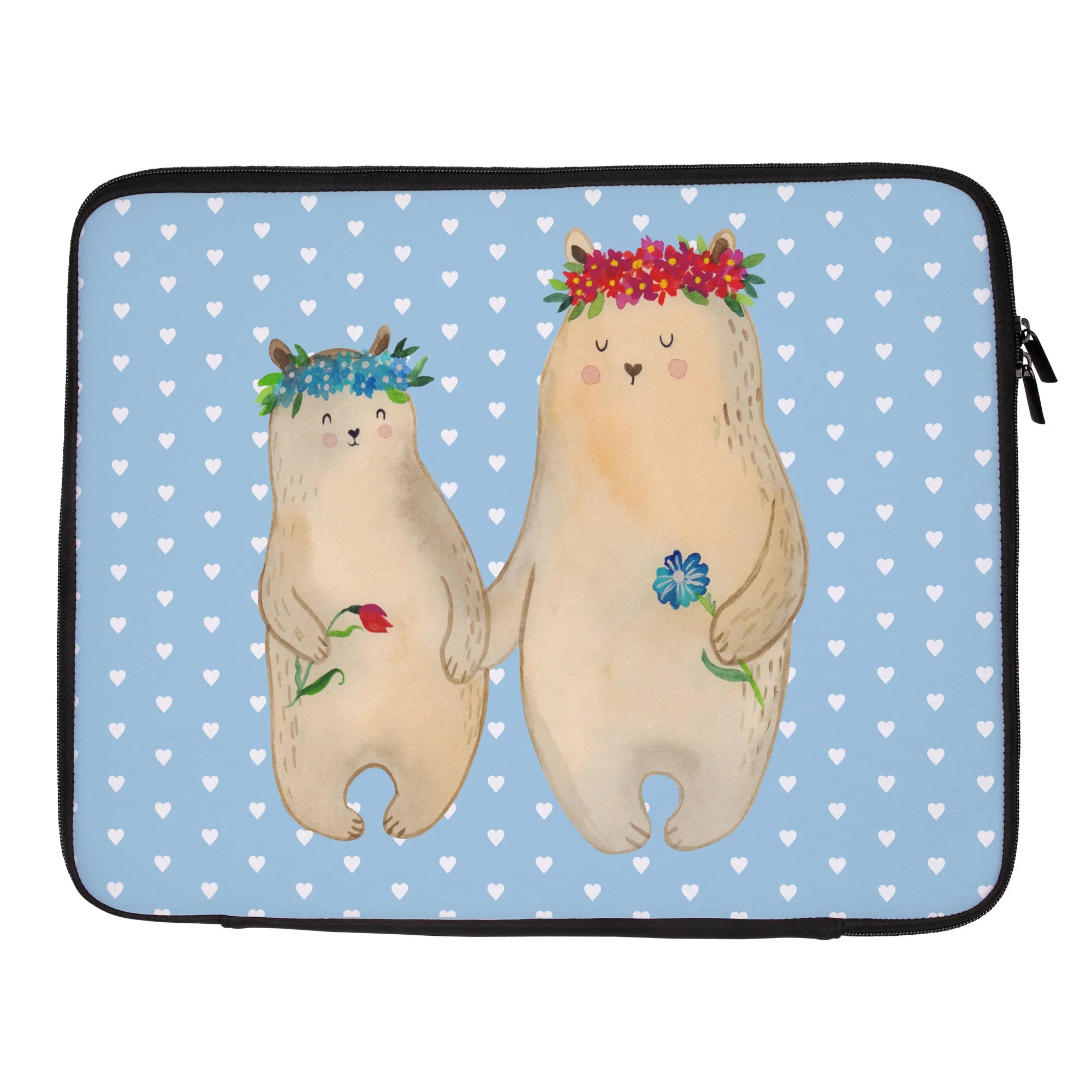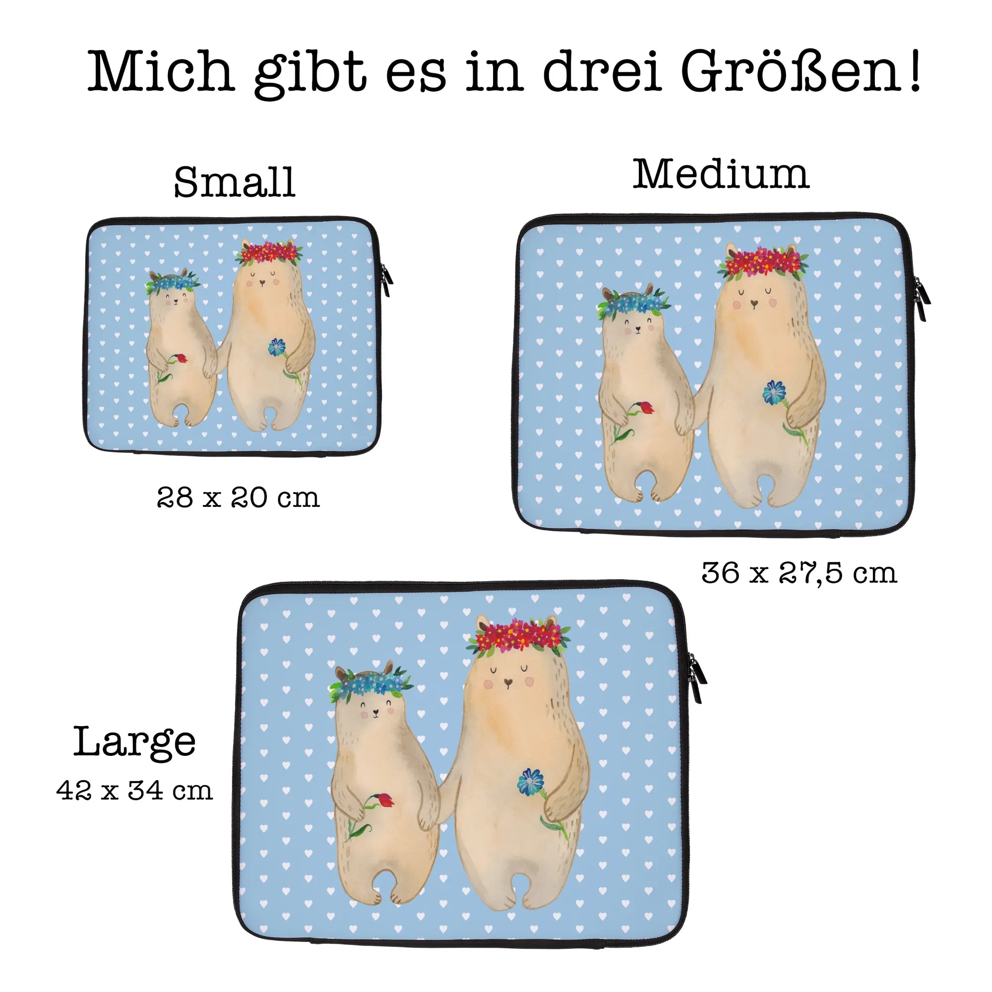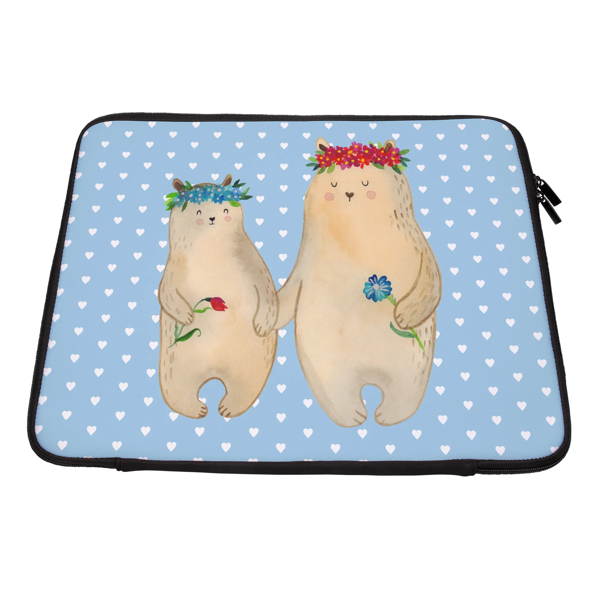 Notebook Tasche Bären mit Blumenkranz - 33 x 42 cm - mit Spruch - Blau Pastell