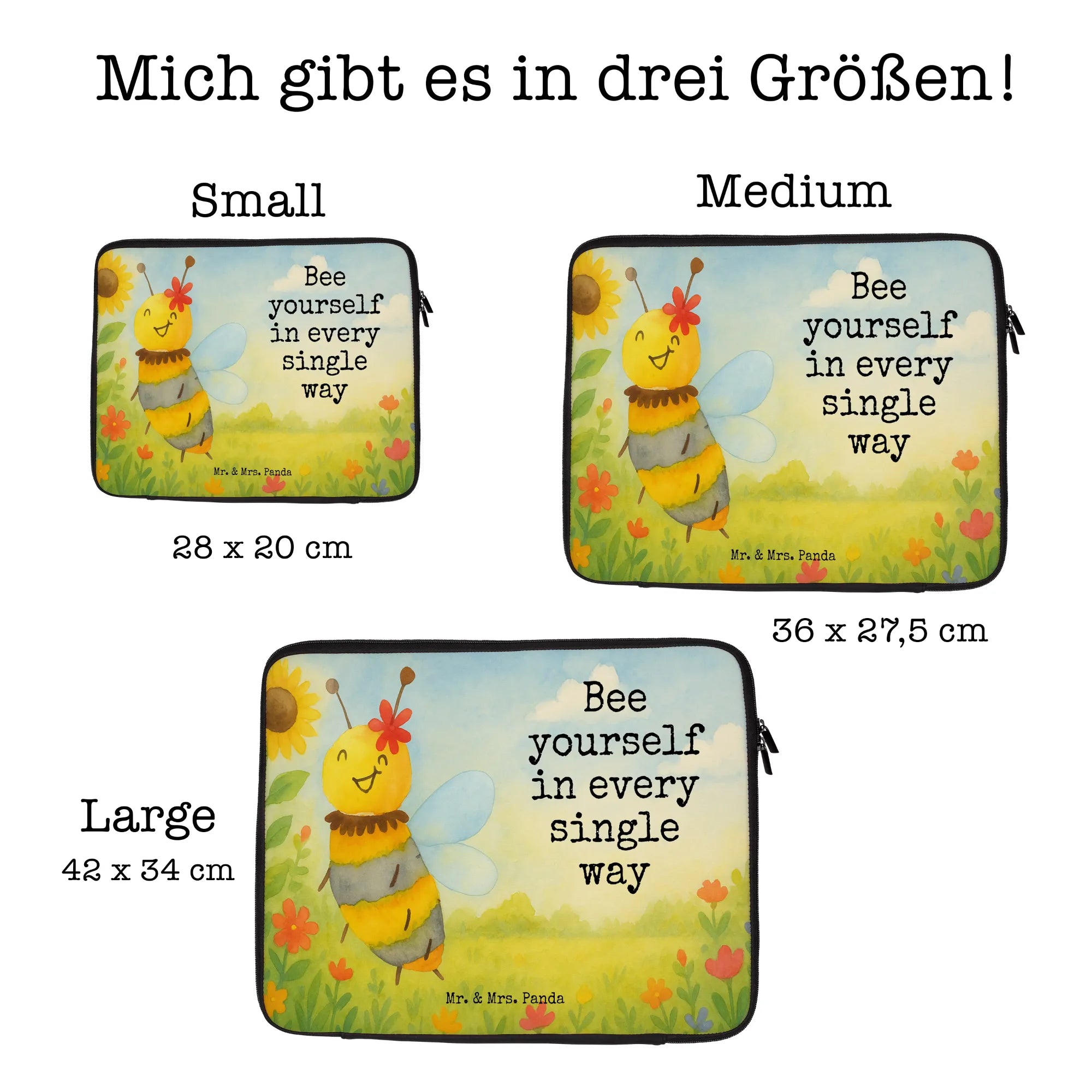 Entdecke die wunderschöne Notebook Tasche von Mr. & Mrs. Panda, perfekt für alle, die ihren Laptop stilvoll schützen möchten. Diese Tasche misst 360 mm x 270 mm x 30 mm und ist aus wasserabweisendem Neopren gefertigt, das deine Geräte vor Kratzern, Staub und anderen Schäden schützt. Mit süßen Motiven und Sprüchen von Mr. & Mrs. Panda bedruckt, bringt sie Freude in deinen Alltag. Der robuste Reißverschluss sorgt dafür, dass dein Notebook sicher verstaut ist, während die strapazierfähige Konstruktion sie ideal für unterwegs macht. Ob auf dem Weg zur Uni, ins Büro oder auf Reisen, diese Notebook Tasche kombiniert Funktionalität und Stil. Pflege sie ganz einfach, indem du sie mit einem feuchten Tuch abwischst – sie ist nicht waschmaschinenfest. Hol dir noch heute deine Tasche und setze ein Statement! Besonderheit: erhältlich in verschiedenen Größen!