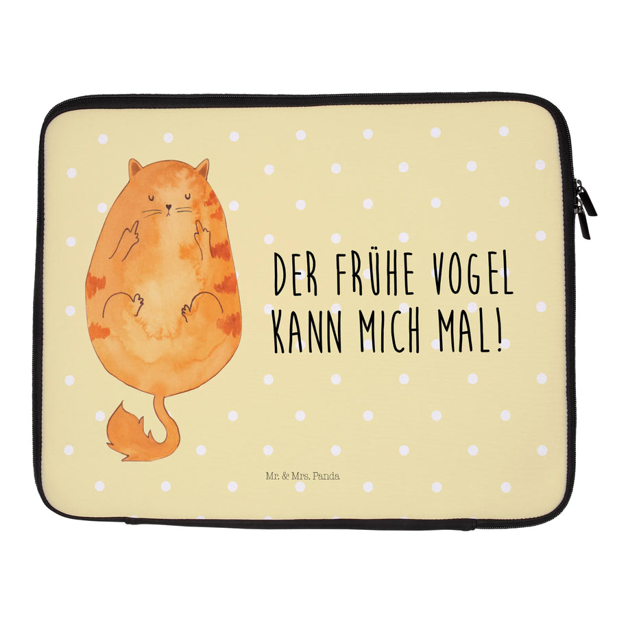 Die perfekte Notebook Tasche Katze Frühaufsteher von Mr. & Mrs. Panda ist nicht nur eine praktische Schutzhülle für dein Laptop oder Notebook, sondern auch ein zauberhaftes Accessoire für alle Katzenliebhaber! Mit einem einzigartigen, handgezeichneten Katzenmotiv auf der Front- und Rückseite, bringt diese Notebook Tasche ganz viel Freude in deinen Alltag. Die süße Katze, die ihre kleinen Mittelfinger zeigt, ist der ideale Begleiter für jeden Morgenmuffel und Frühaufsteher!