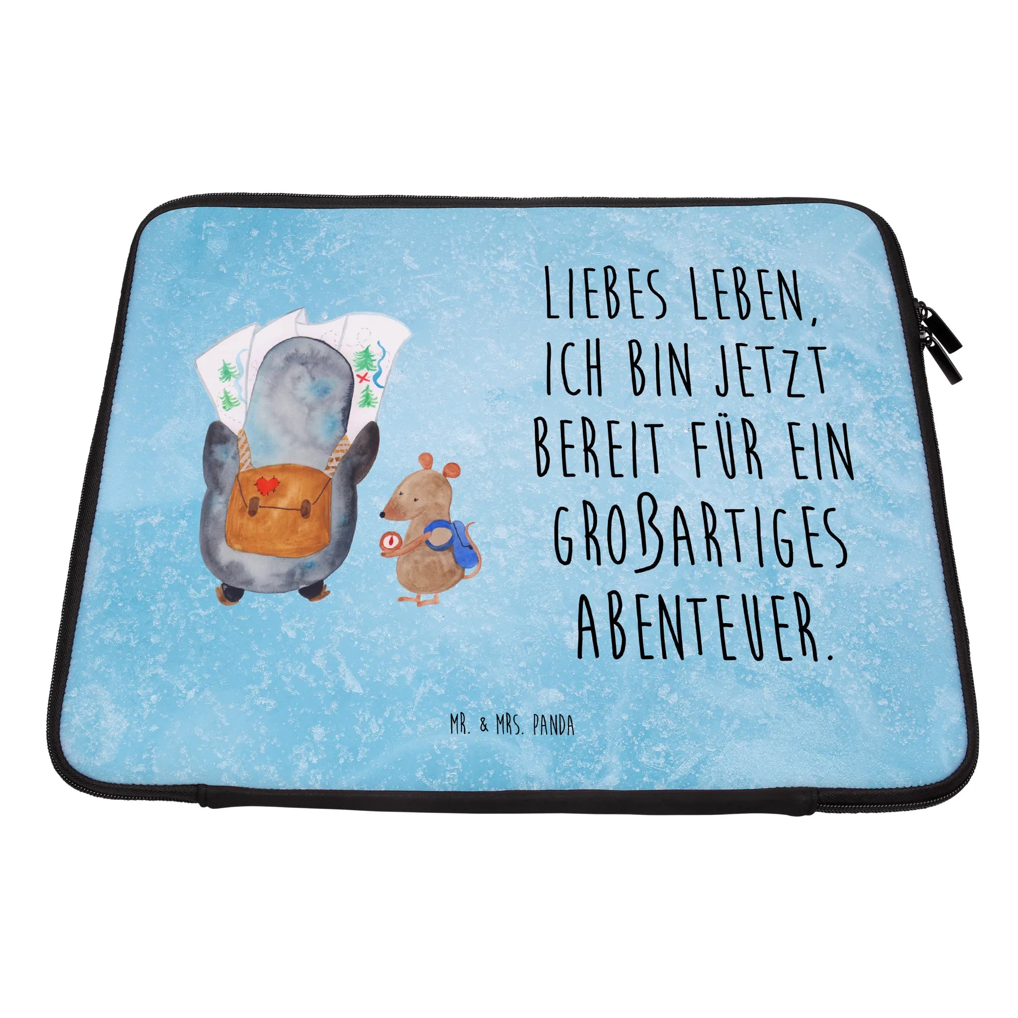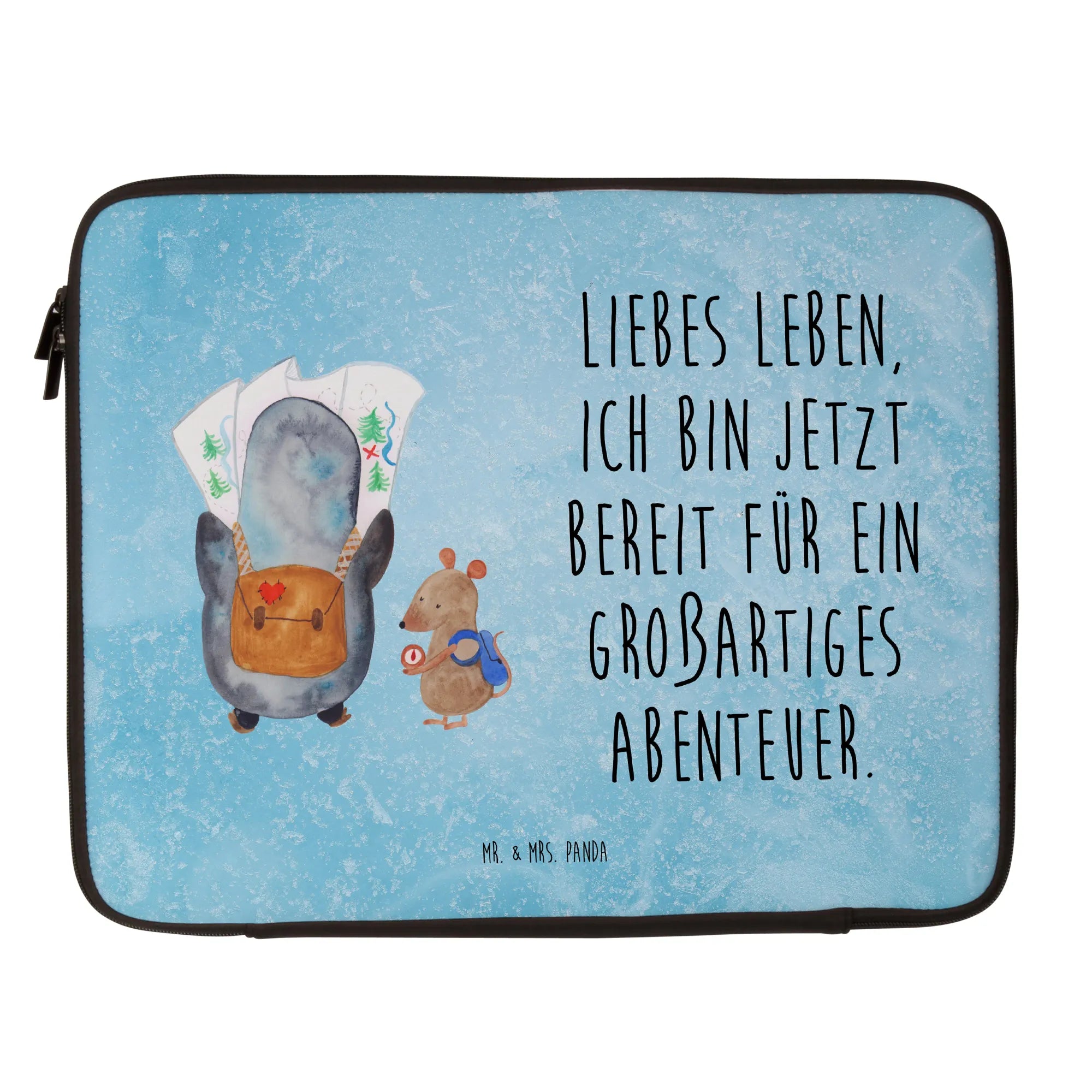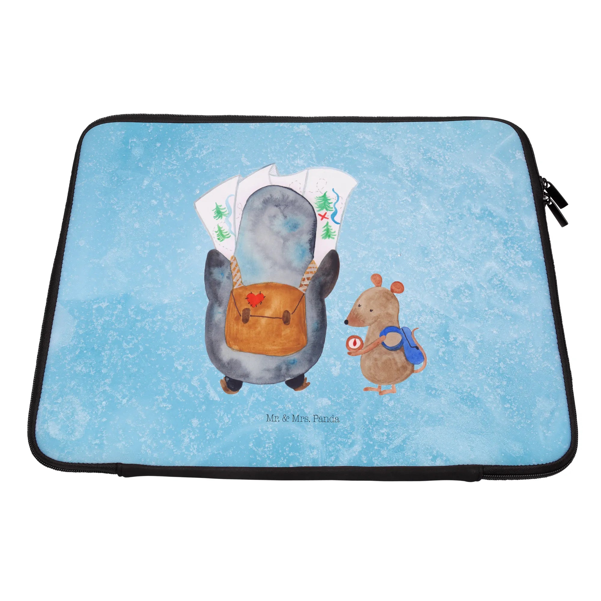 Entdecke die süße Notebook Tasche mit dem bezaubernden Motiv Pinguin & Maus Wanderer von der Pinguin - Kollektion von Mr. & Mrs. Panda!