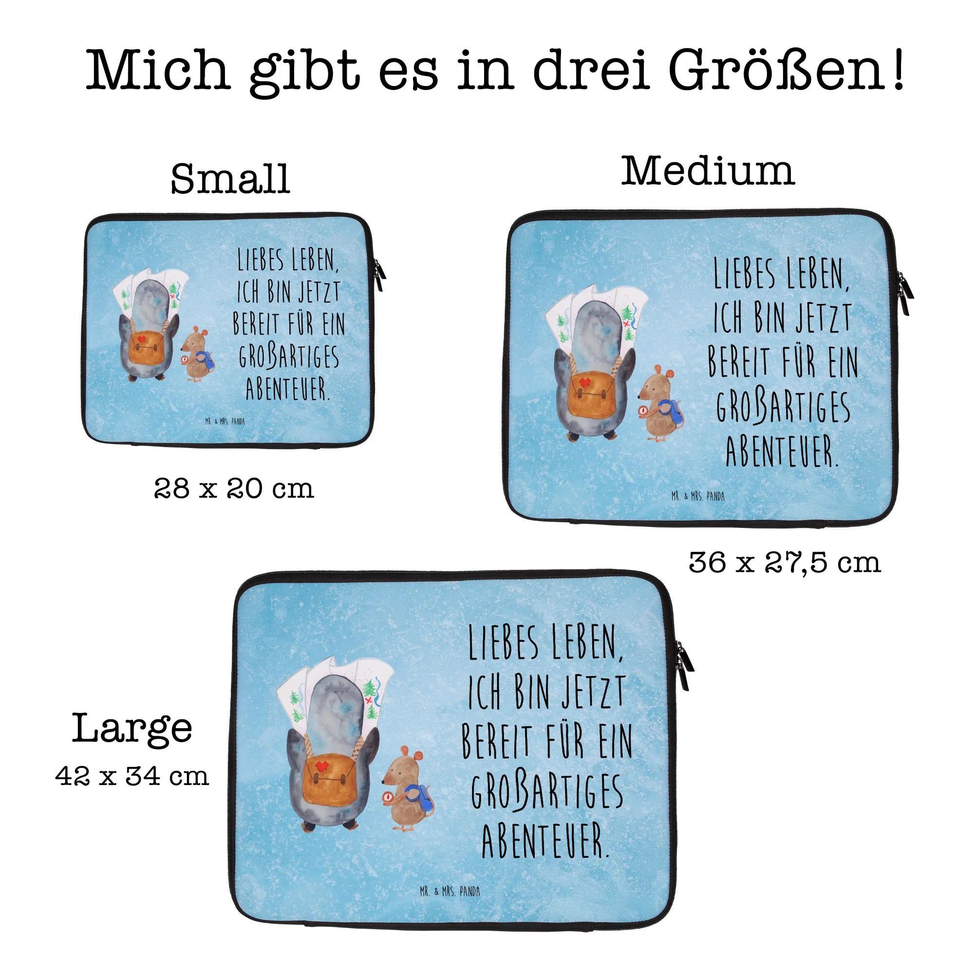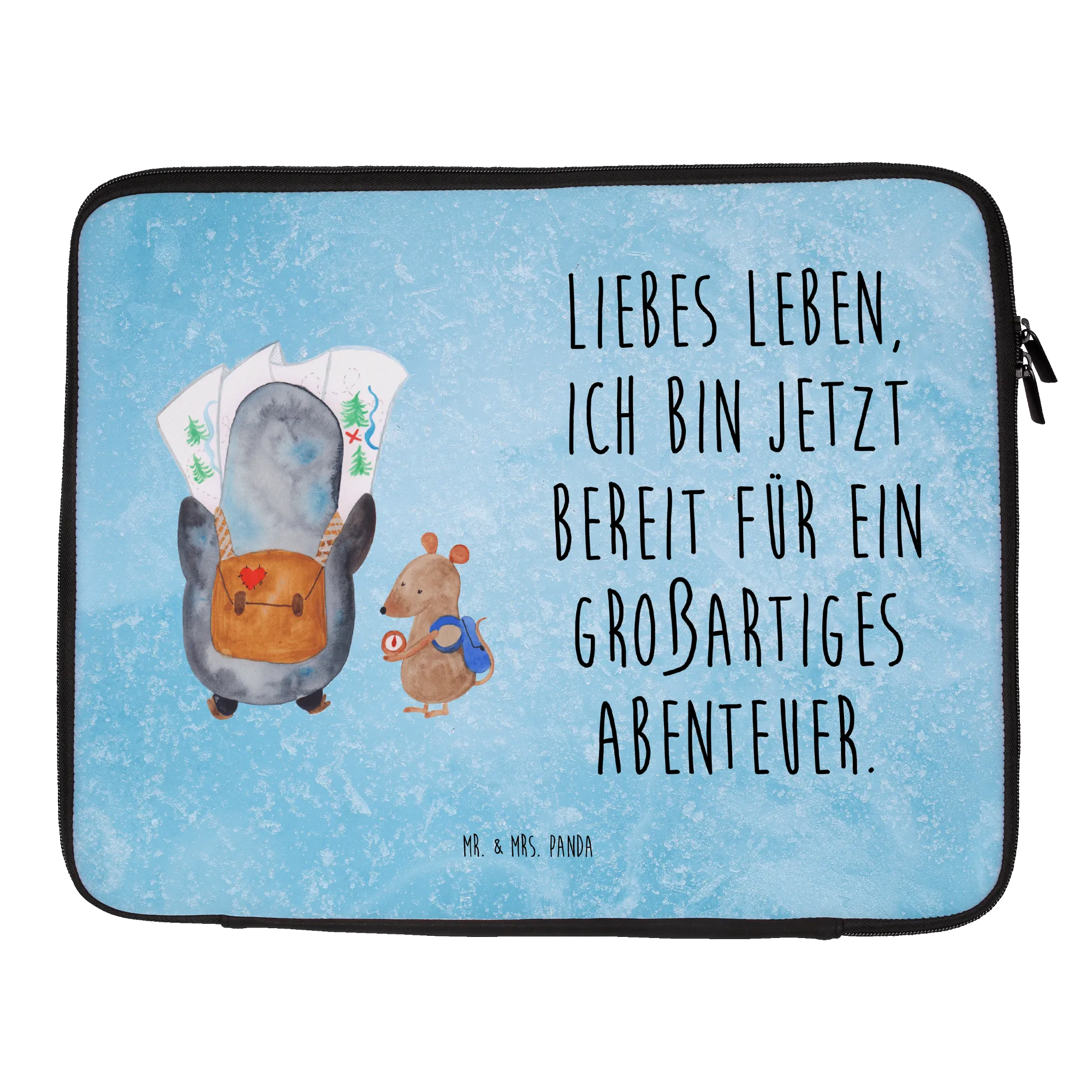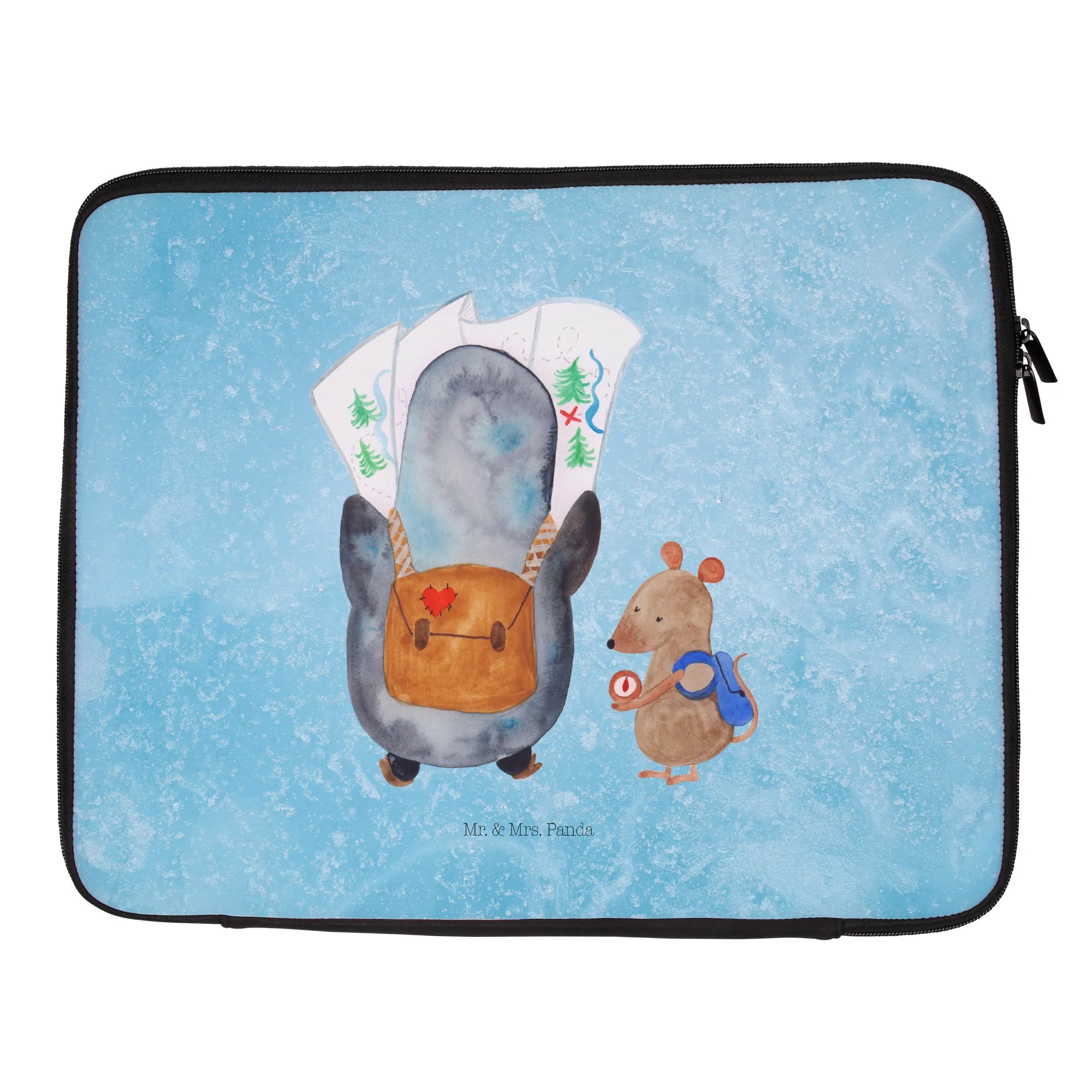 Entdecke die süße Notebook Tasche mit dem bezaubernden Motiv Pinguin & Maus Wanderer von der Pinguin - Kollektion von Mr. & Mrs. Panda!