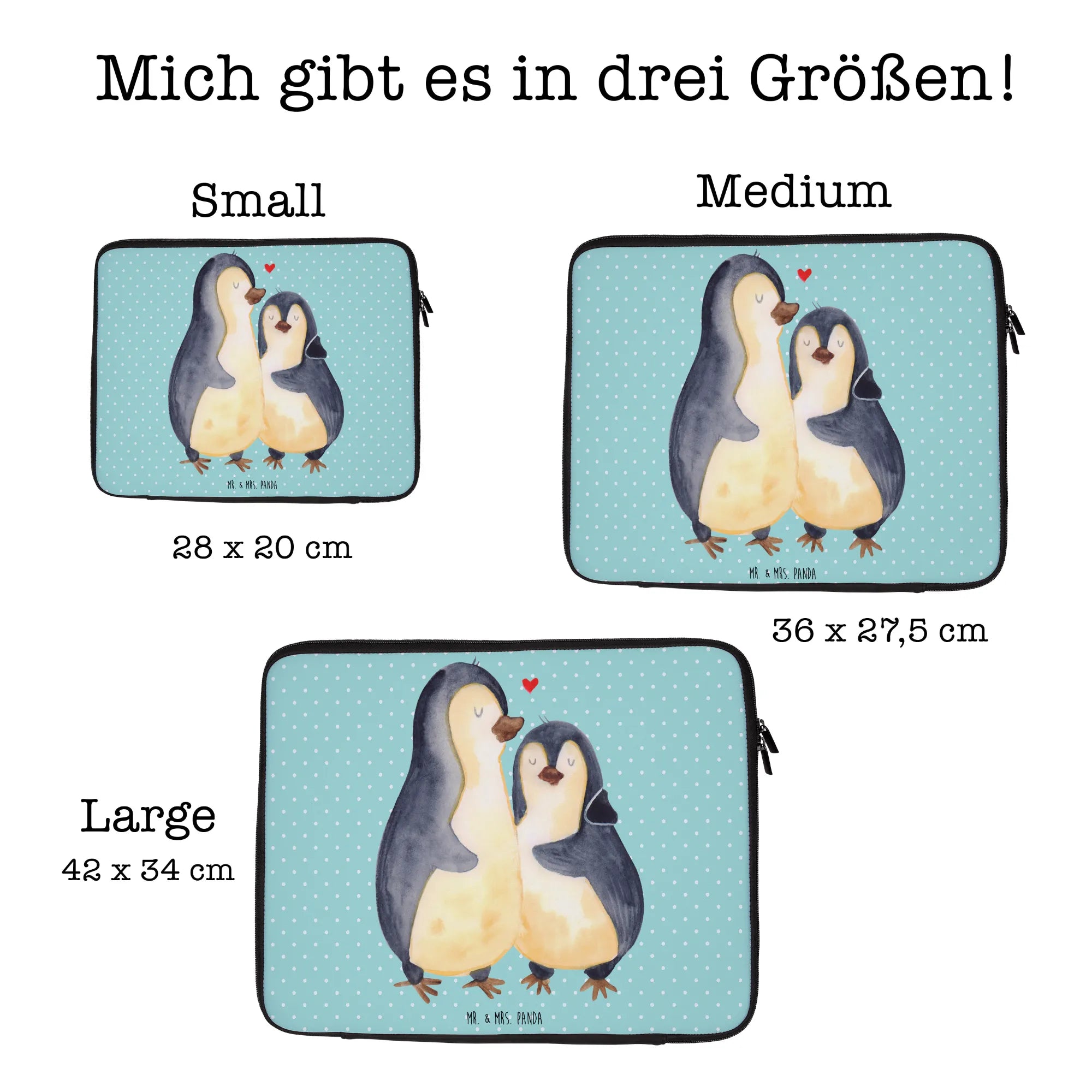 Ein perfektes Geschenk für frisch Verliebte oder langjährige Paare. Egal zu welchem Anlass, die Notebook Tasche aus der Pinguin-Kollektion von Mr. & Mrs. Panda ist eine liebevolle Hommage an die Zuneigung zwischen Freunden oder Partnern. Mach das Leben deiner Liebsten ein Stückchen schöner - verschenke diese einzigartige, süße Notebook Tasche!